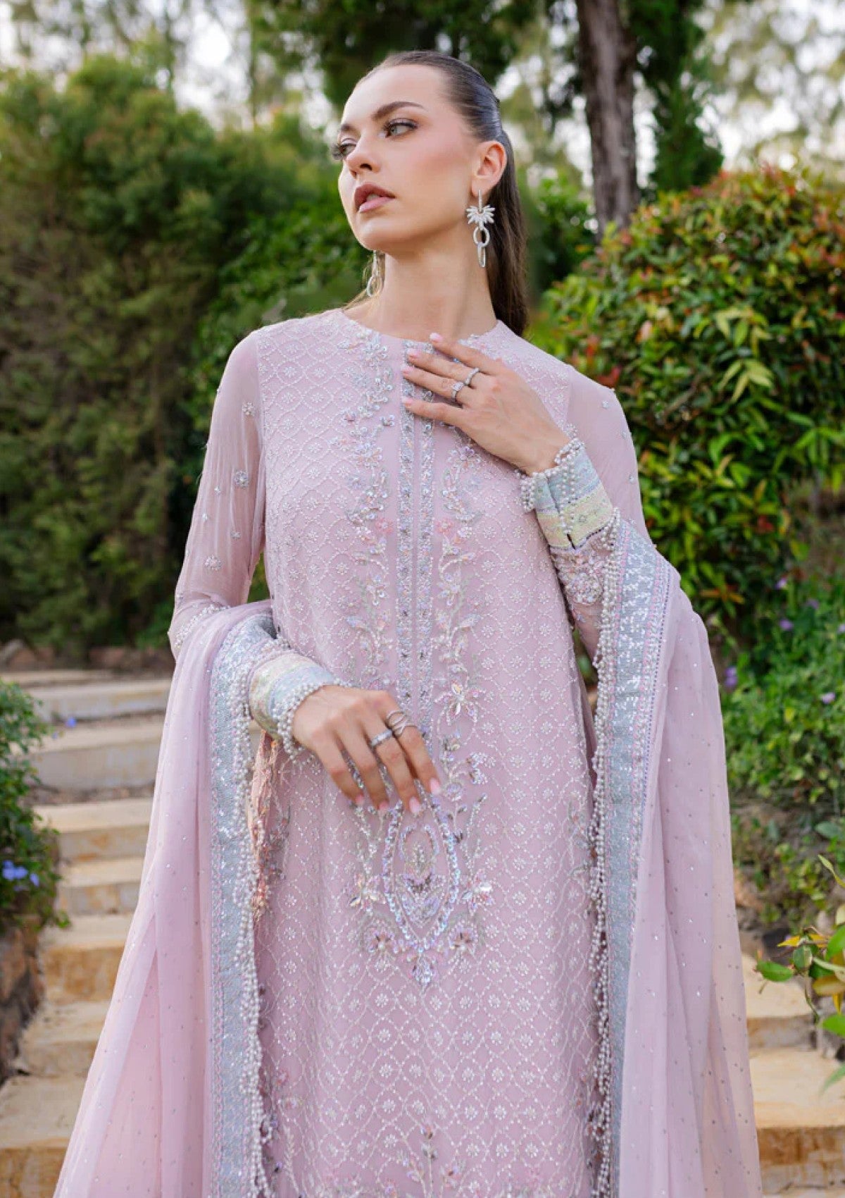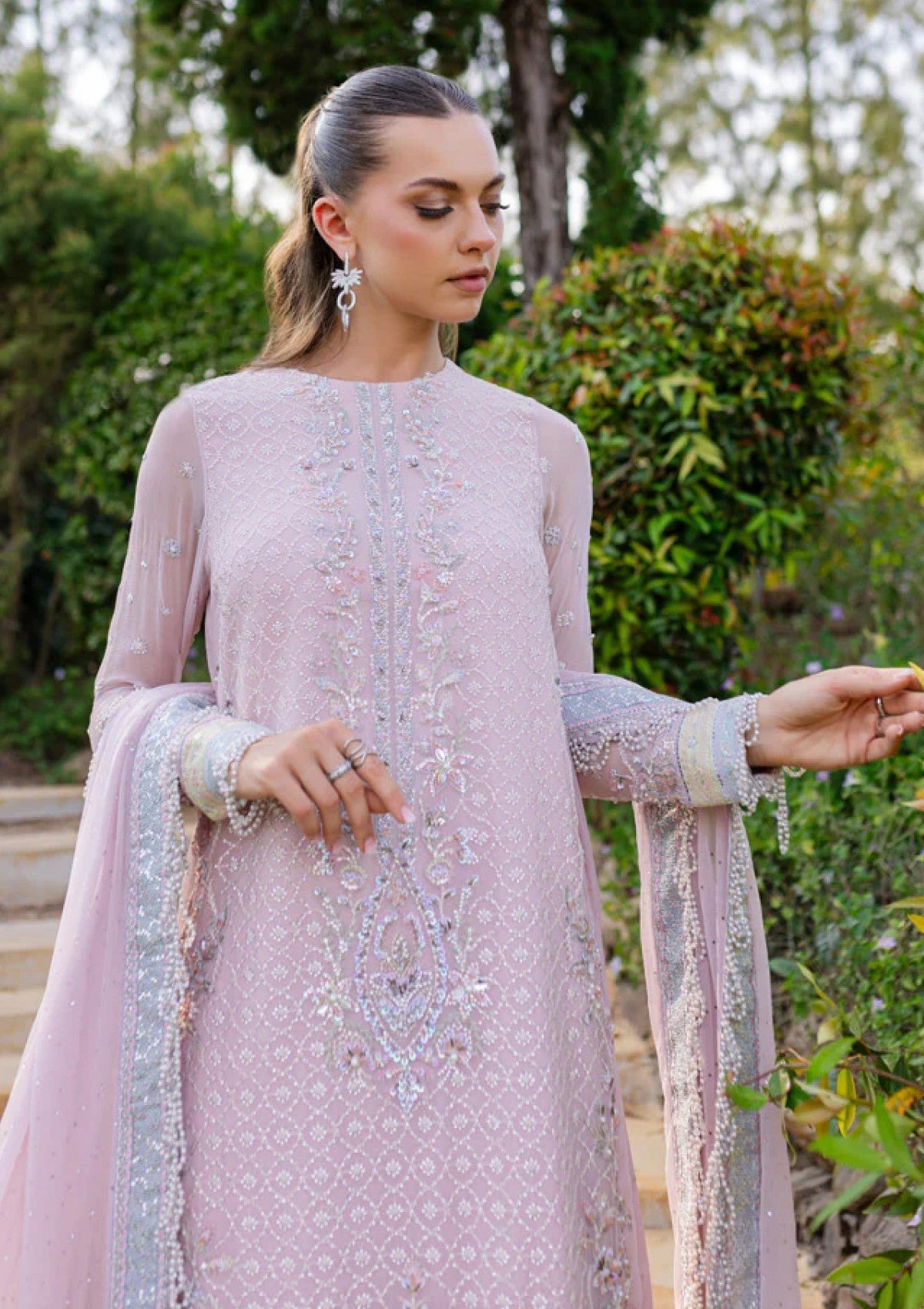 - DYED CRINKLE CHIFFON SEQUINS EMBROIDERED HAND EMBELLISHED SLEEVES