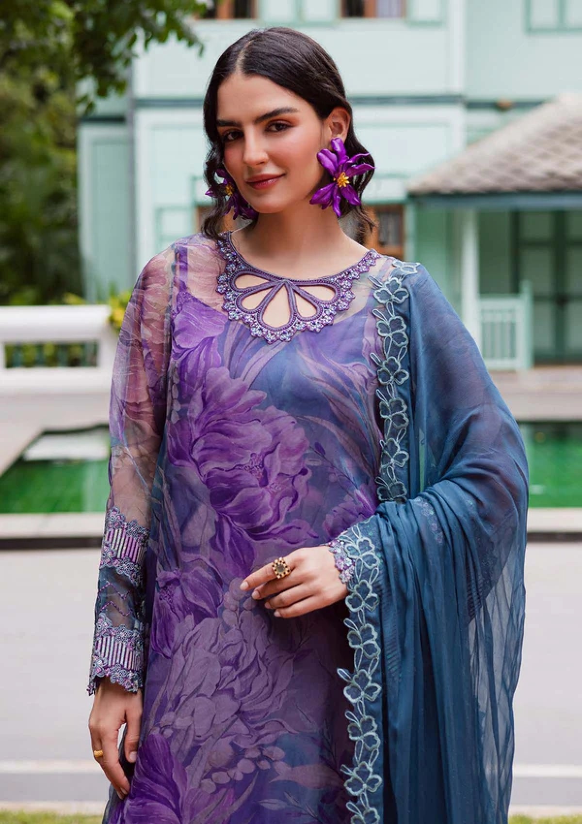 - Printed And Embroidered Organza Shirt With Hand Embellished Neckline