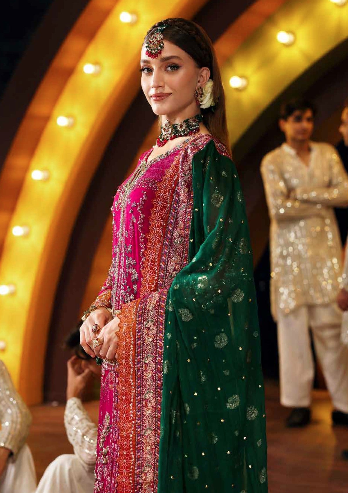 - Embroidered & Makaish Chiffon Zarri Dupatta (Semi Stitched)