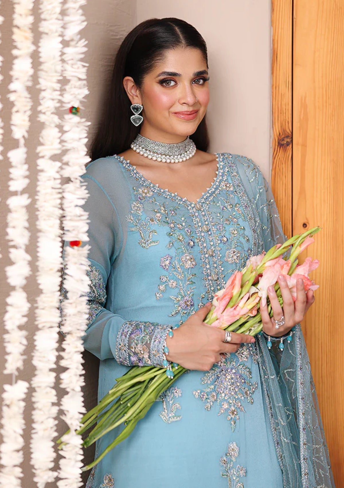 - Embroidered and sequinned front and back daman border (Organza)