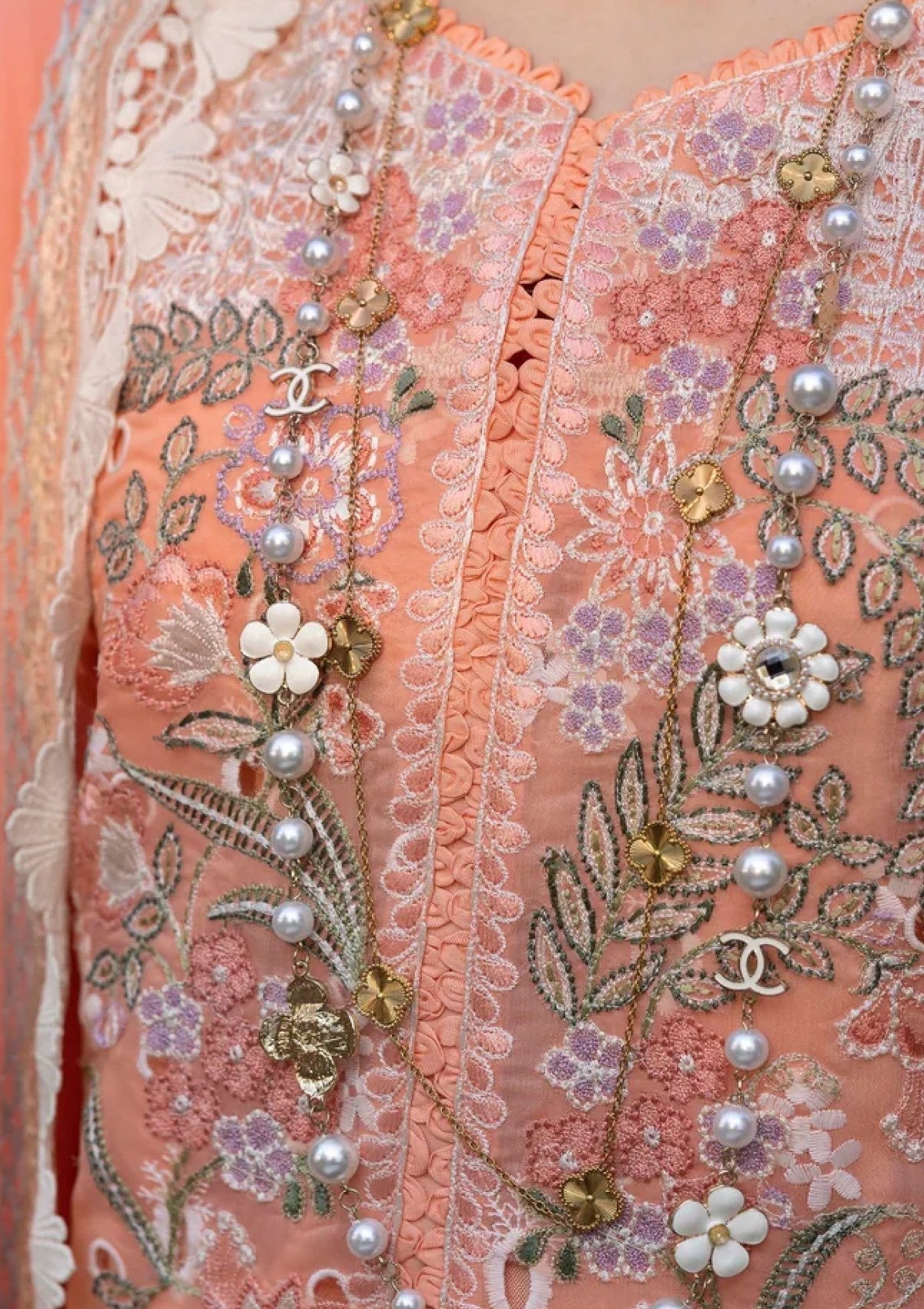 3. FRONT LIGHT PEACH WITH BORING CHEMICAL LACE EMBROIDERY,