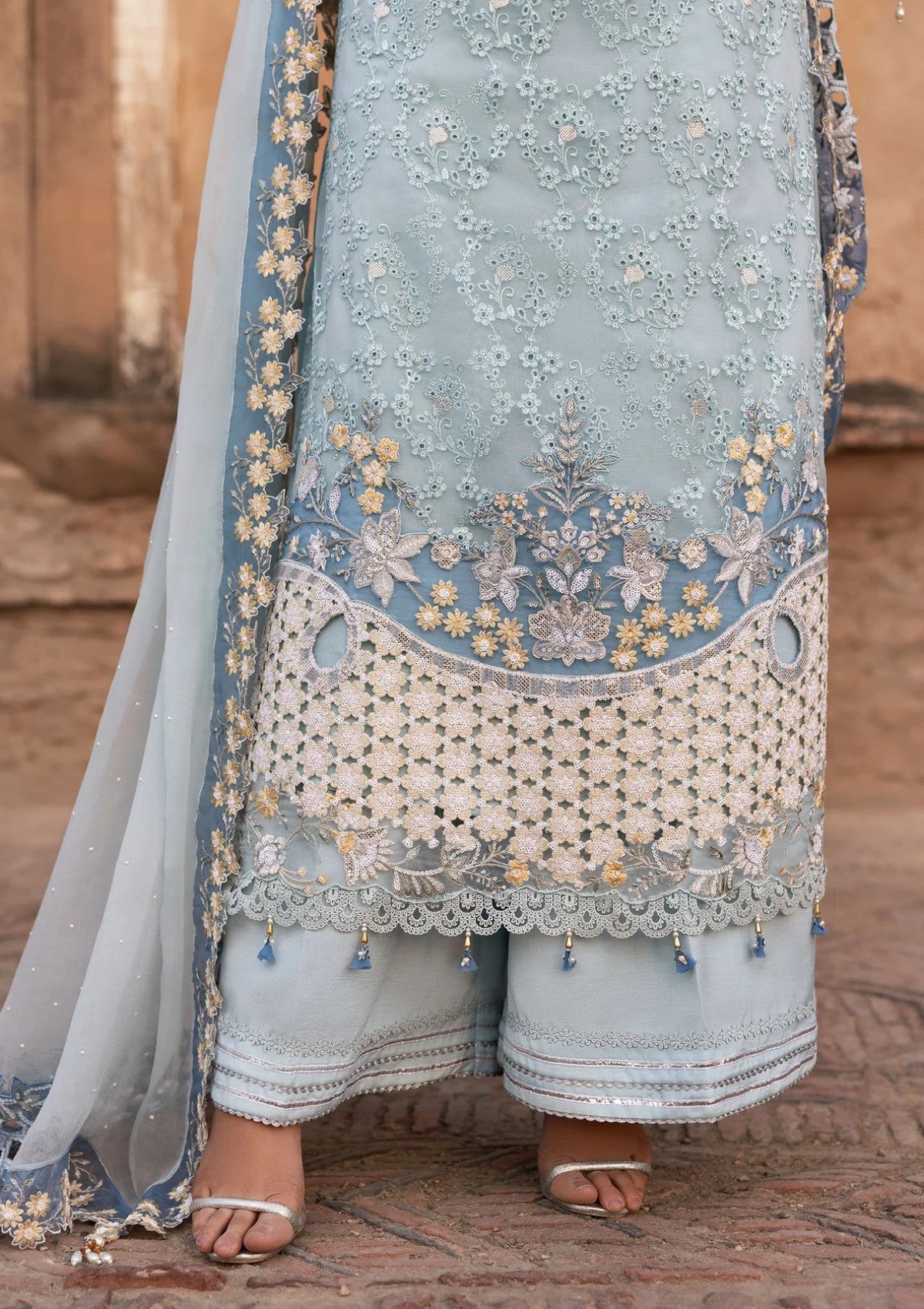 Embroidered Organza Daaman Border Front with Cutwork