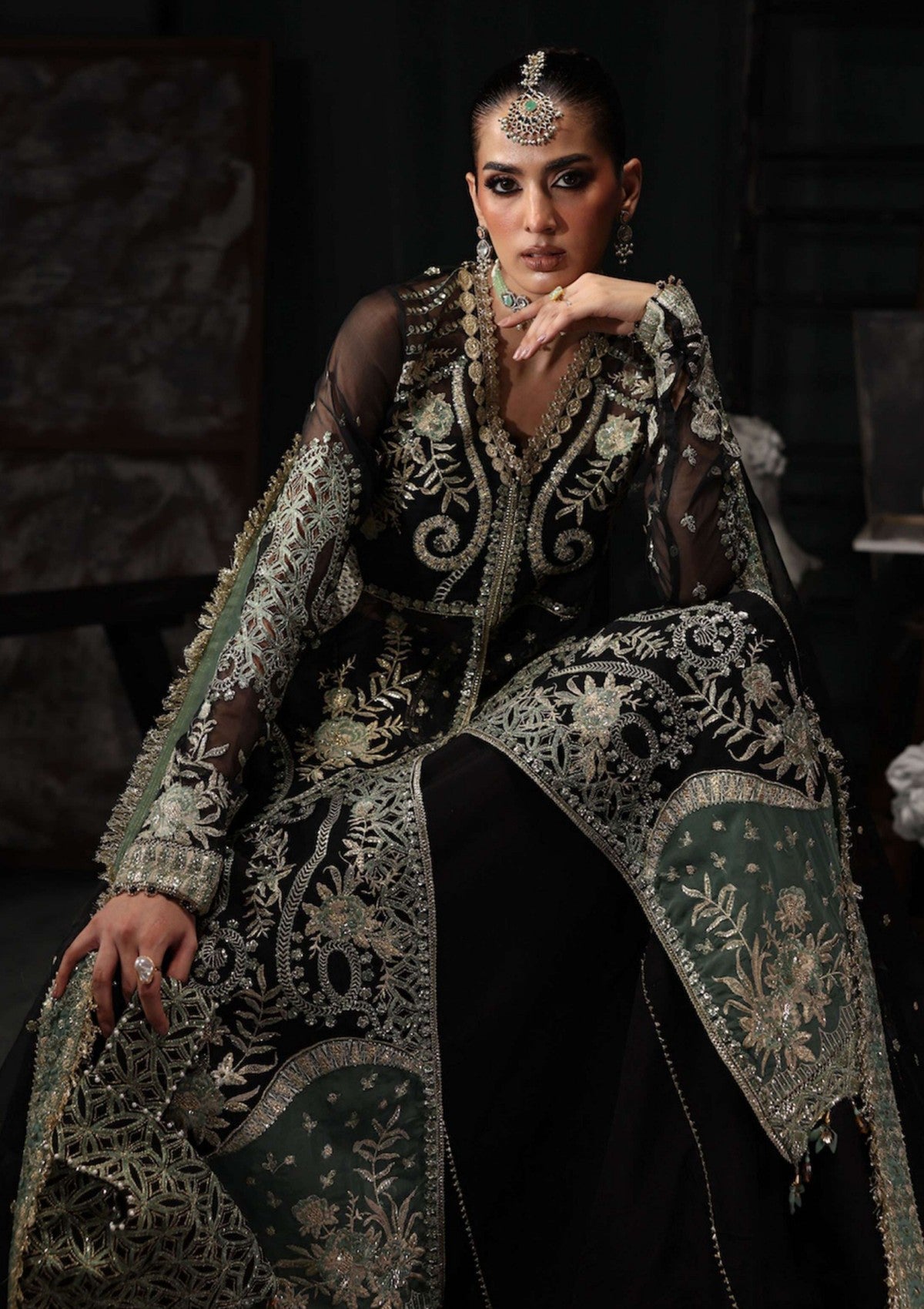 - Embroidered Organza Front Panels(Left + Right) with Cutwork