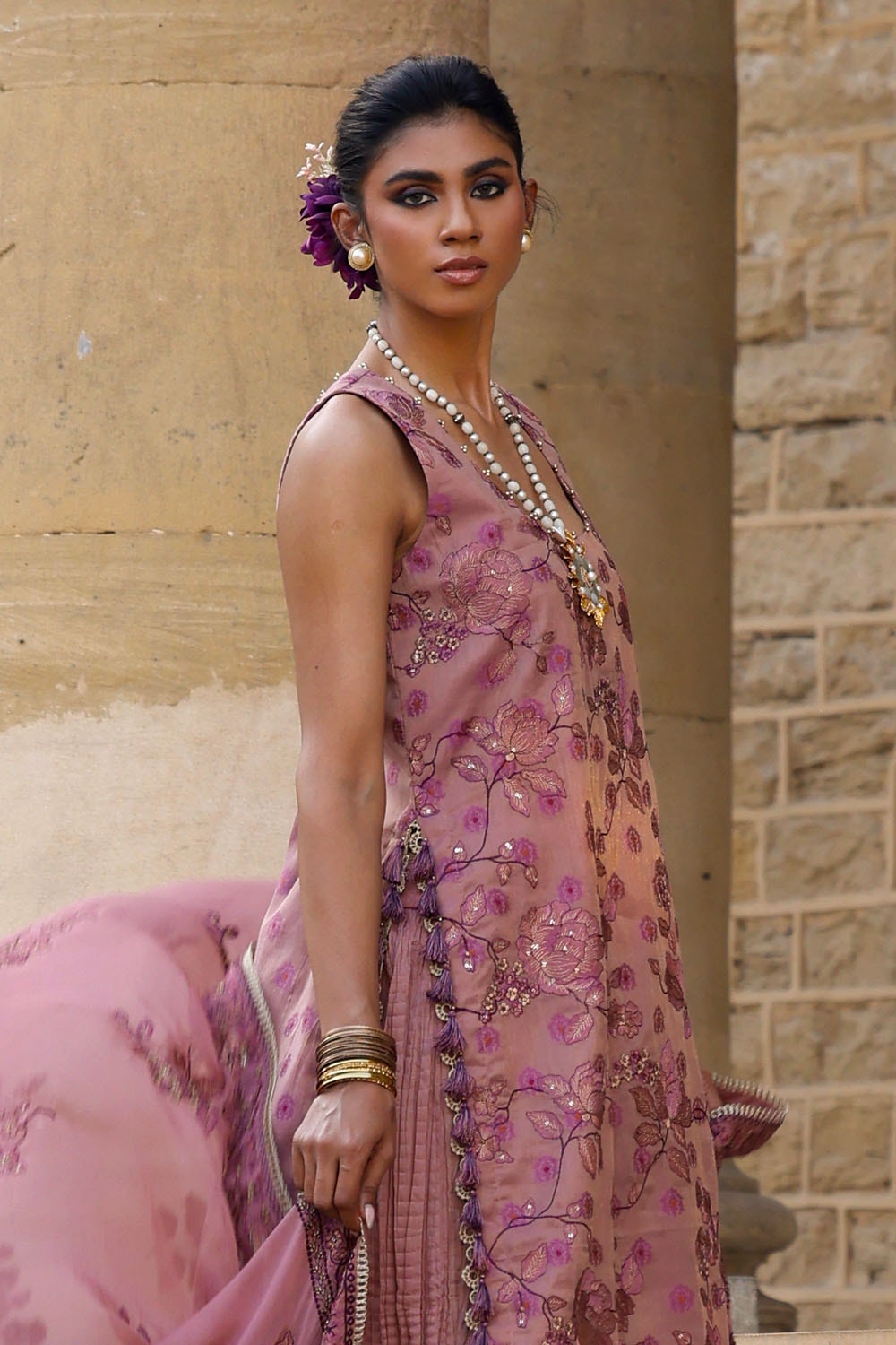 Embroidered Mehsuri Jacquard Shirt Front & Sleeves with Mehsuri Jacquard Back. Embroidered Borders for Front, Back & Sleeves on Organza - 3.05 Meters