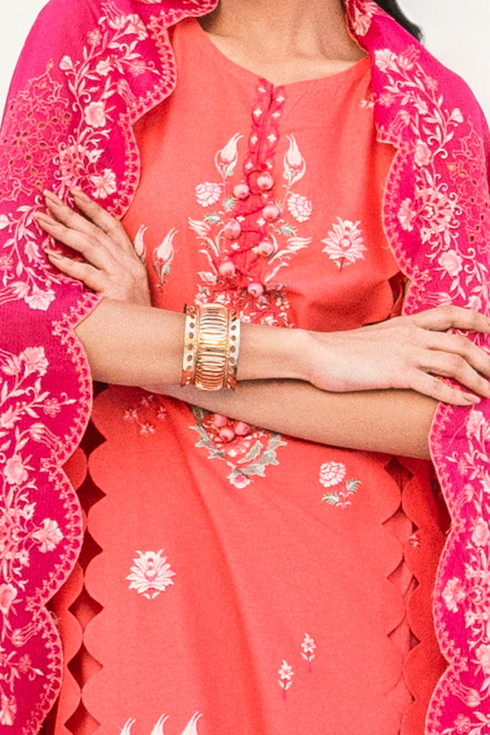 Embroidered Lawn Shirt Front, Side Panels & Sleeves with Embroidered Patch, Borders for Front, Back & Chalk on Organza. Dyed Lawn Back - 2.43 Meters