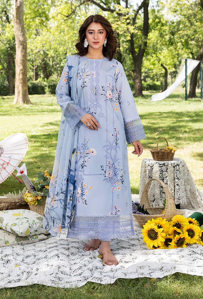 Printed Lawn Chikenkari Embroidered Shirt 3 Meters