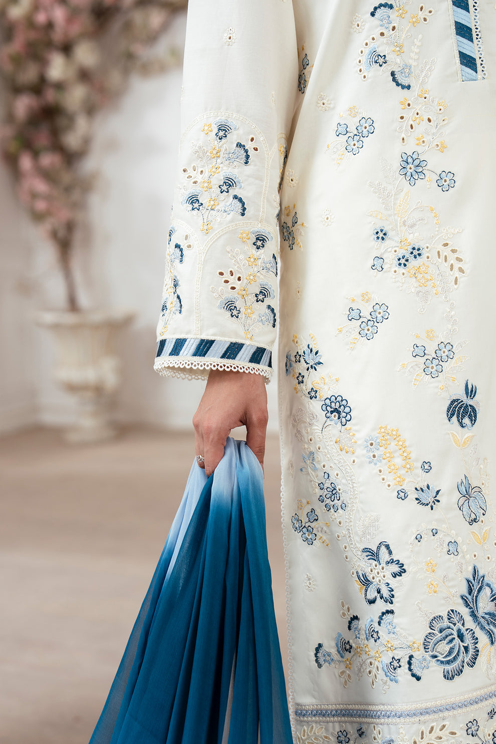Embroidered Lawn shirt Printed Chiffon dupatta Plain cotton trouser .