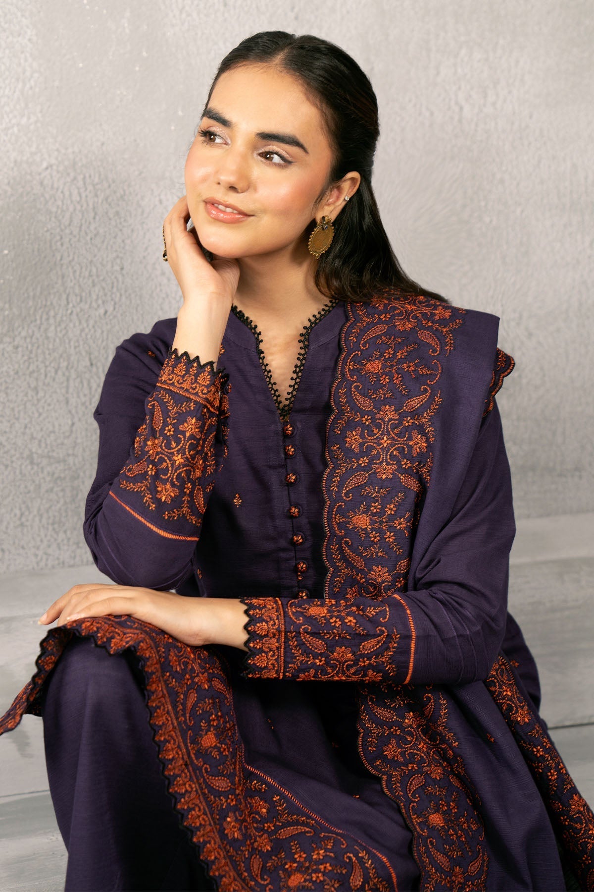 DYED AND EMBROIDERED SLUB KHADDAR DUPATTA 2.5 M