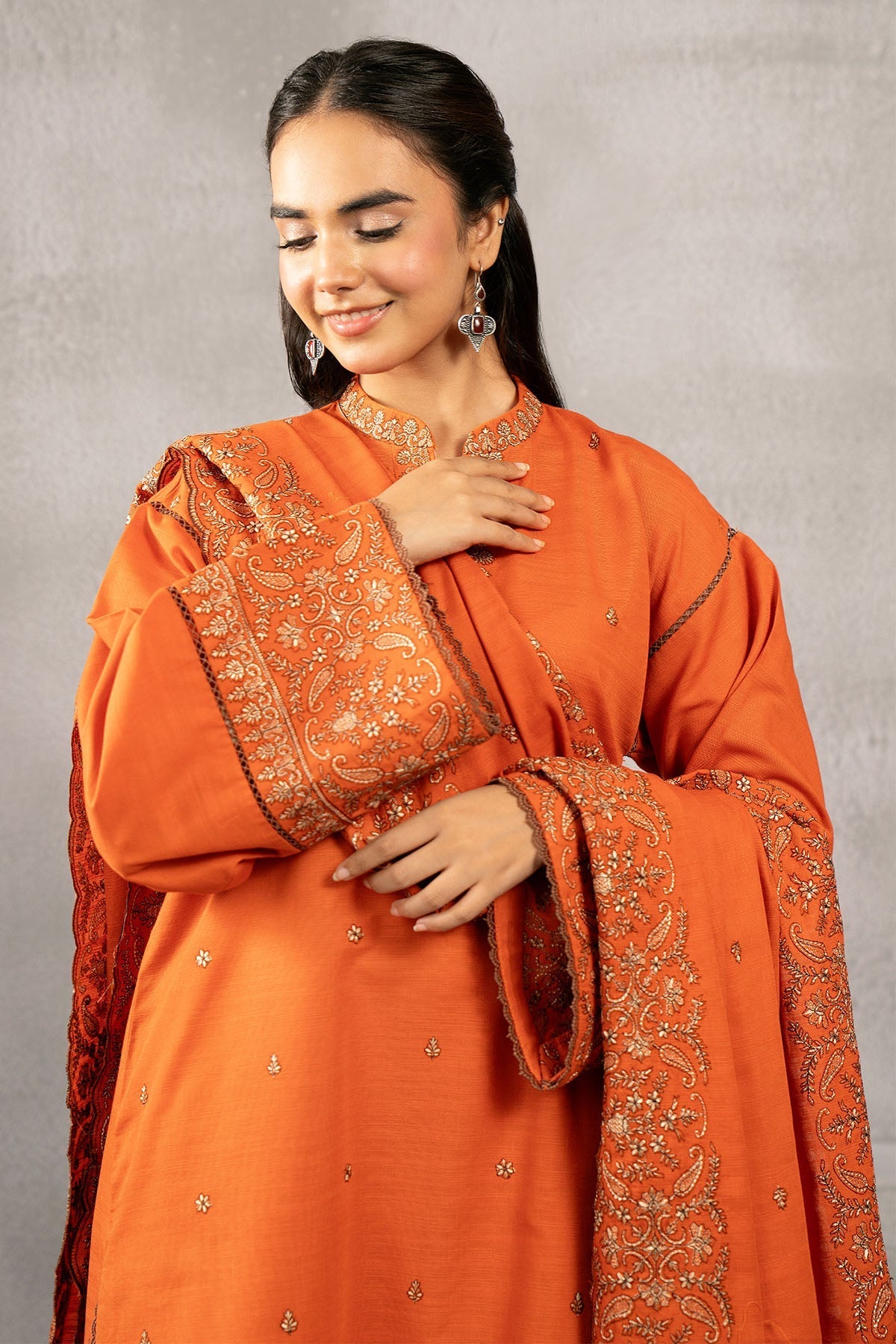 DYED AND EMBROIDERED SLUB KHADDAR DUPATTA 2.5 M