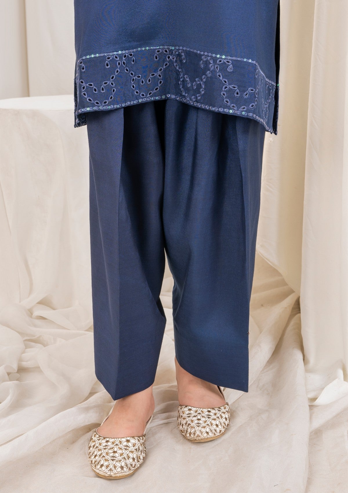 This navy blue 3-piece embroidered dress for kids is a stunning blend of eleganceand tradition. The richly hued shirt features intricate embroidery that adds depthand sophistication to the overall design. Paired with matching trousers, theensemble is both timeless and refined. The highlight of this outfit is the beautifullyembroidered organza dupatta, delicately crafted to elevate the look with its gracefultexture and detailed workmanship. Perfect for weddings, festive occasions, orevening events, this navy blue ensemble exudes charm and poise, making it astandout addition to any formal wardrobe.