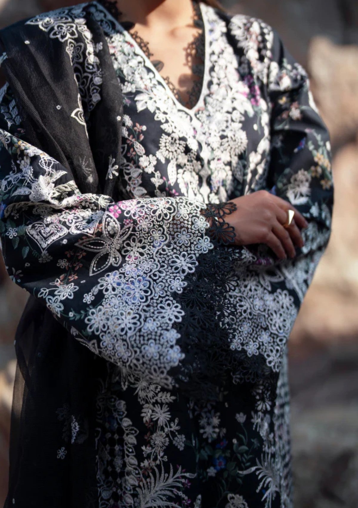 - ORGANZA EMBROIDERED FRONT+BACK+SLEEVES BORDER (2.97 M)