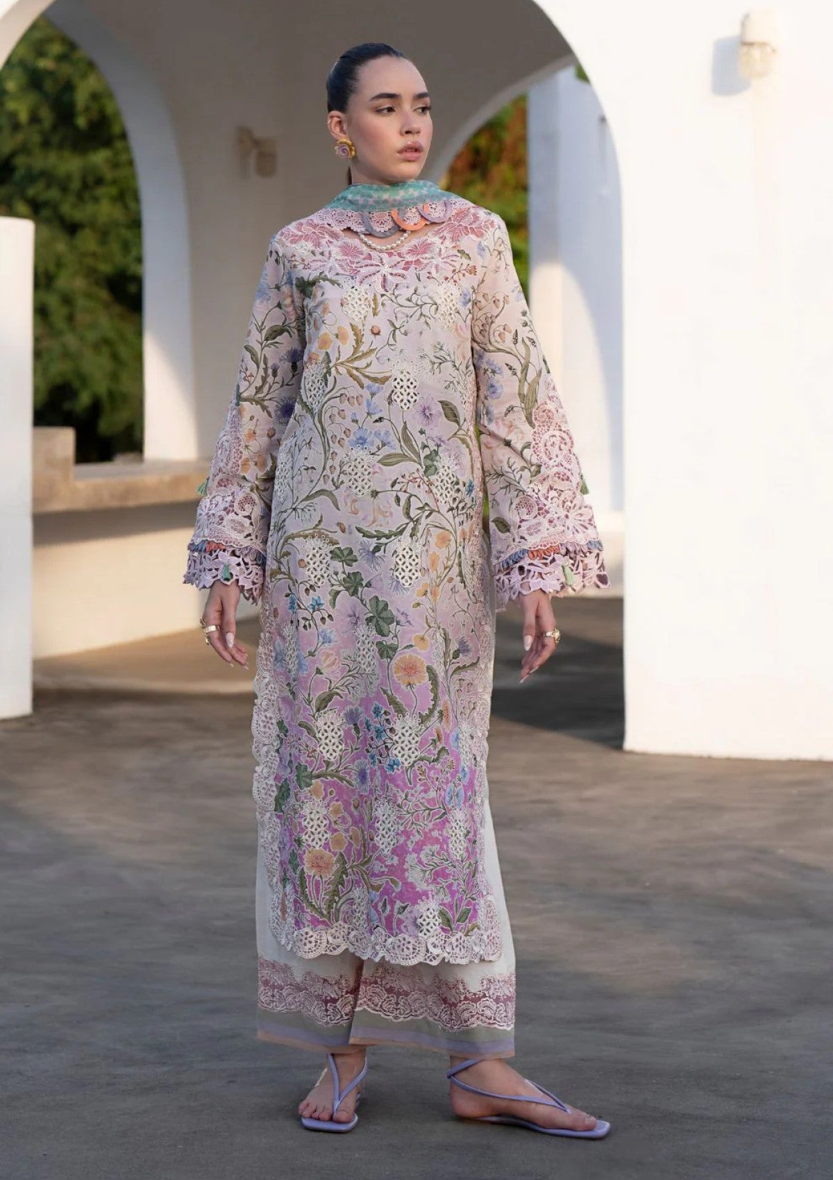 Behold the beauty of ombre blooms âÃÂàintroducing Rose! ðÃÂÃÂù âÃÂàa canvas of summer dreams. The shirt is exquisitely embroidered with classic chikankari embroidery, adding timeless grace and texture. Notice the side chalk and daman patti, finished in a delicate cutwork style âÃÂàa touch of ethereal beauty. The embroidered neckline further enhances the refined appeal. Paired with dyed cambric trousers featuring an embroidered border and a printed chiffon dupatta for a light finish, Rose is where bold floral prints meet soft ombre hues and delicate embroidery, creating an unforgettable summer statement.