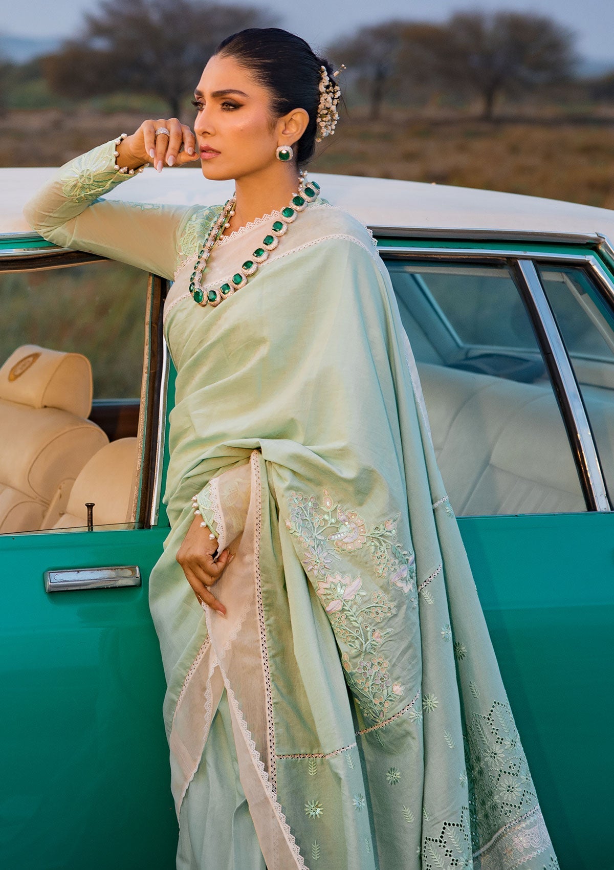 - Embroidered Chikankari Sleeves on Organza with Sequins