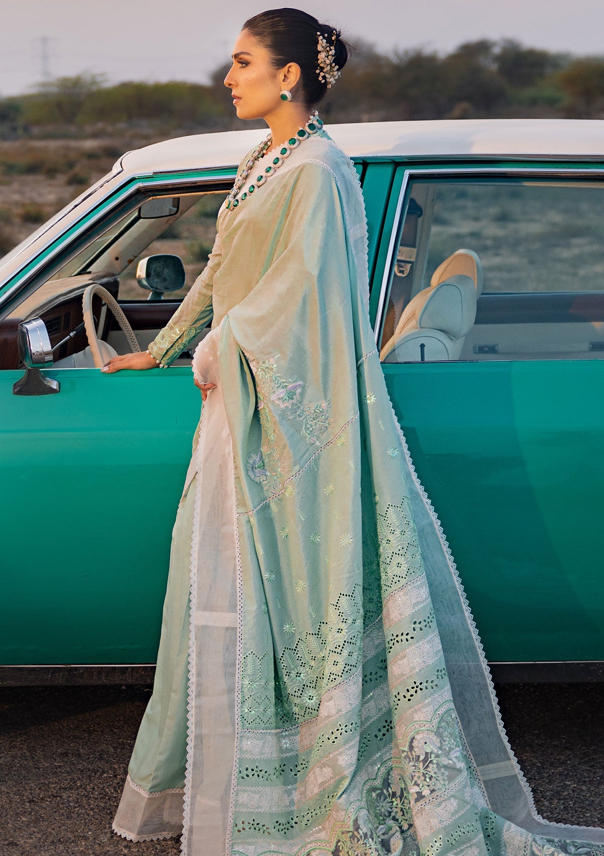 - Embroidered Cutwork & Chikankari Dupatta Borders(2 Sides) on Organza