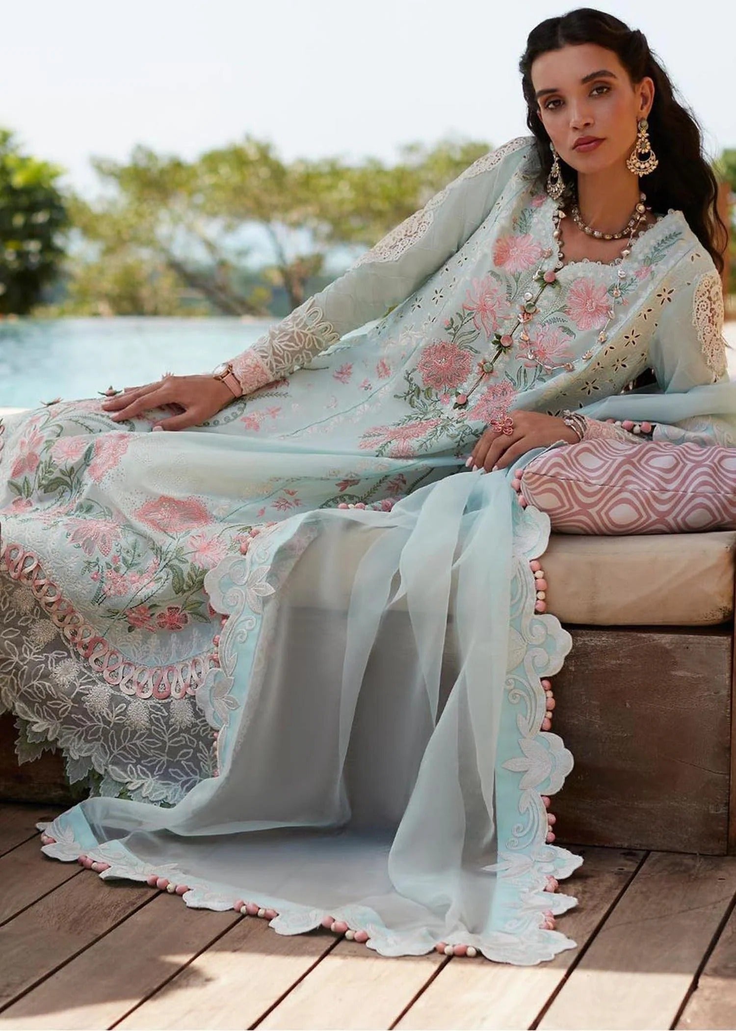 - Embroidered Front Hem Border (Organza) Sky1 Piece