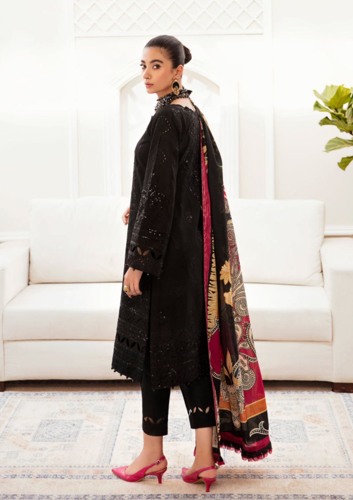 - Embroidered & sequinned infinity lawn border for the front (C)