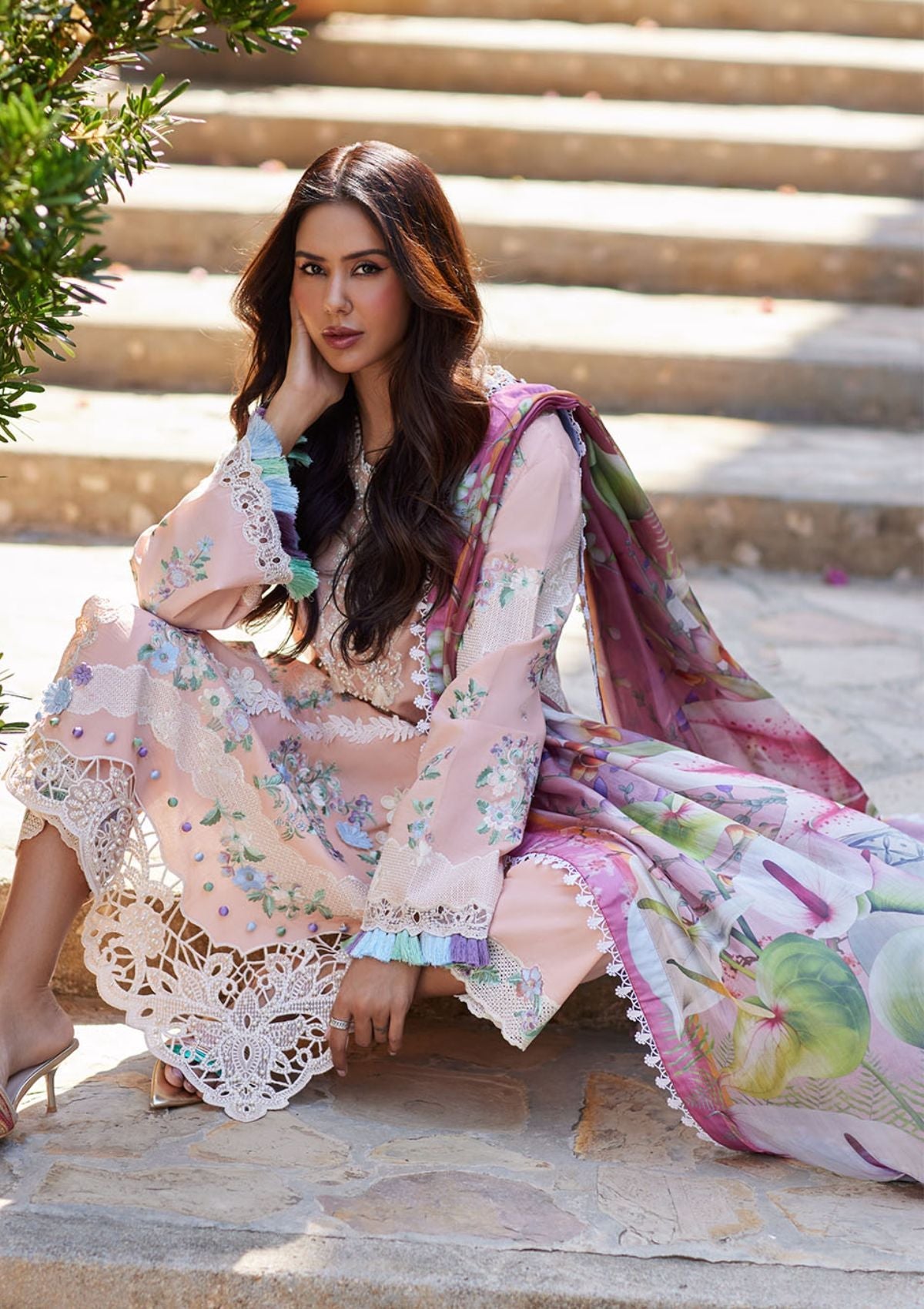 - Embroidered lawn sleeves