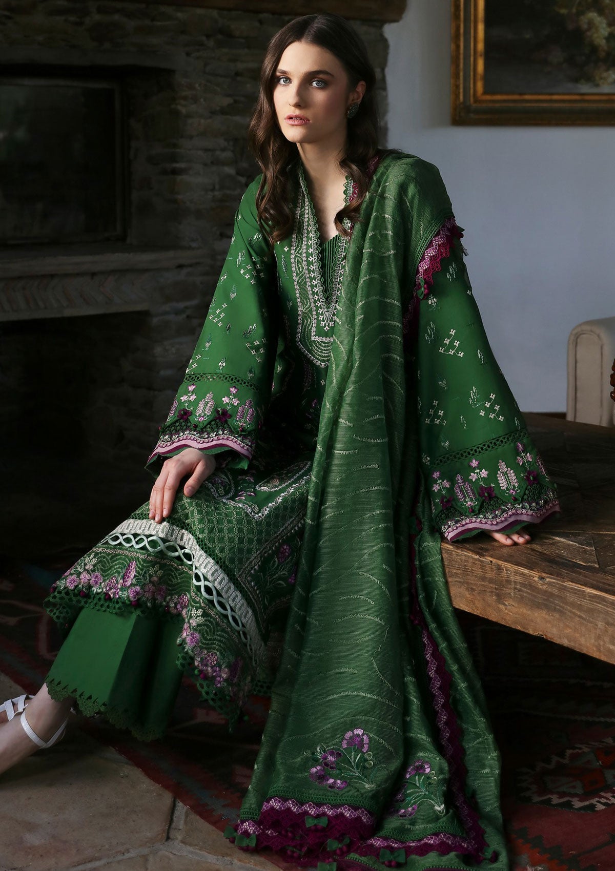 In a lush shade of green, Ezel dazzles with its intricate embroidery in soft hues of pinks, greens, and magenta. Floral vines and twirls enrich the lawn fabric, paired with a chiffon dupatta that carries the theme of floral embroidery.