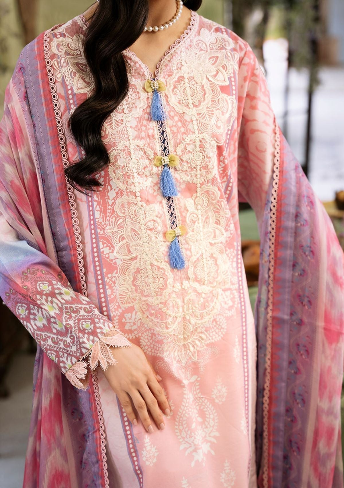 - Printed lawn back and sleeves
