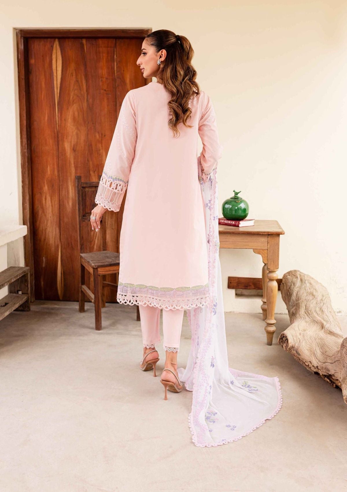 - EMBROIDERED SLEEVES ON PINK LAWN 26" 01
