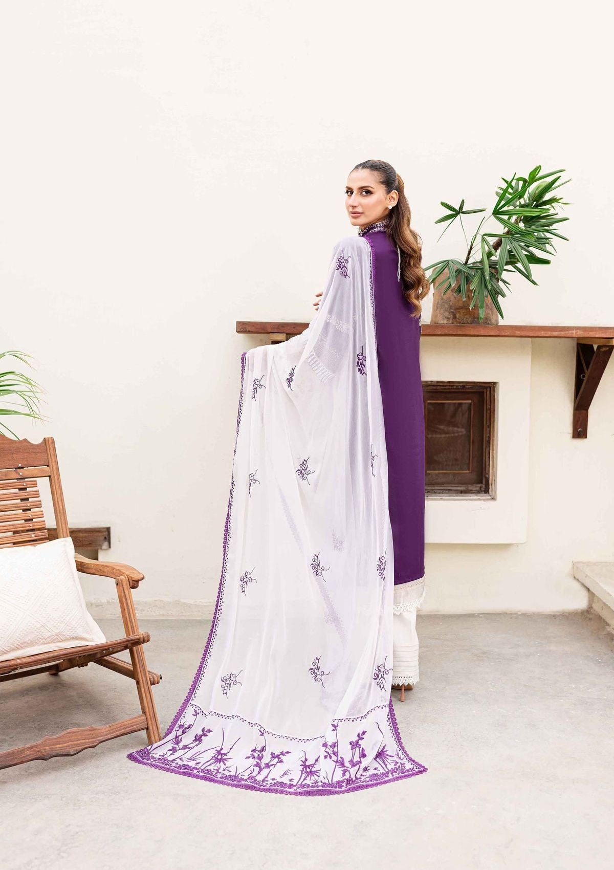 - EMBROIDERED FRONT LEFT PANEL ON PLUM LAWN FABRIC W-13" 01