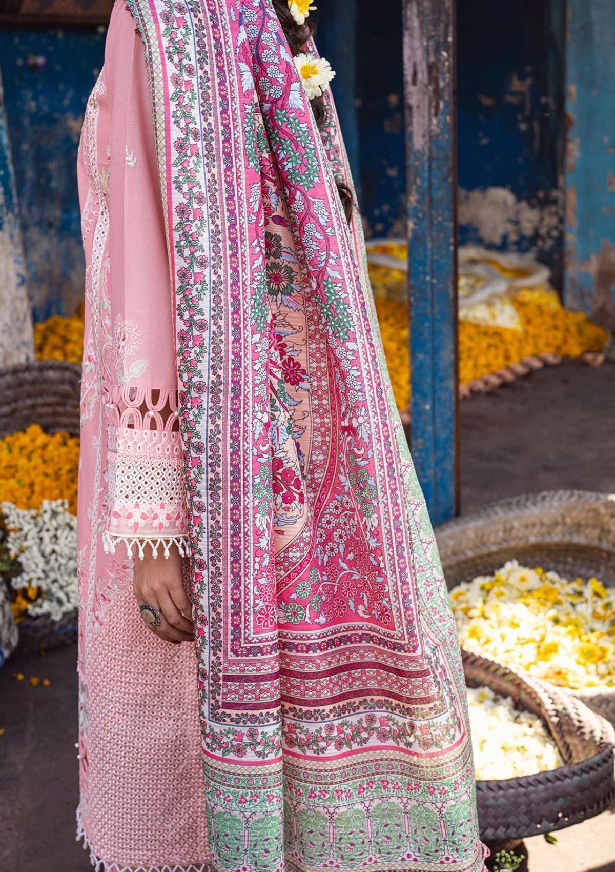 - Embroidered Sleeves Organza Border 1 Piece