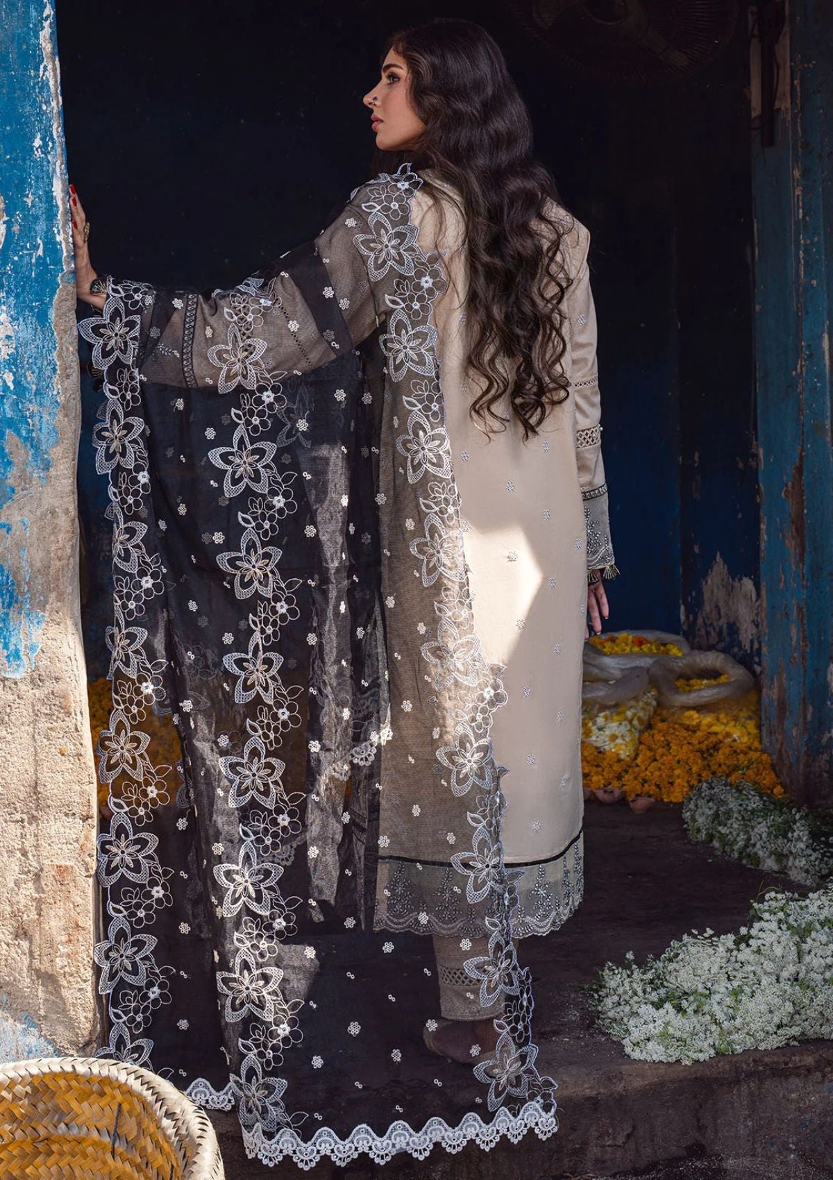 - Embroidered Back Daman Organza Border 1 Piece