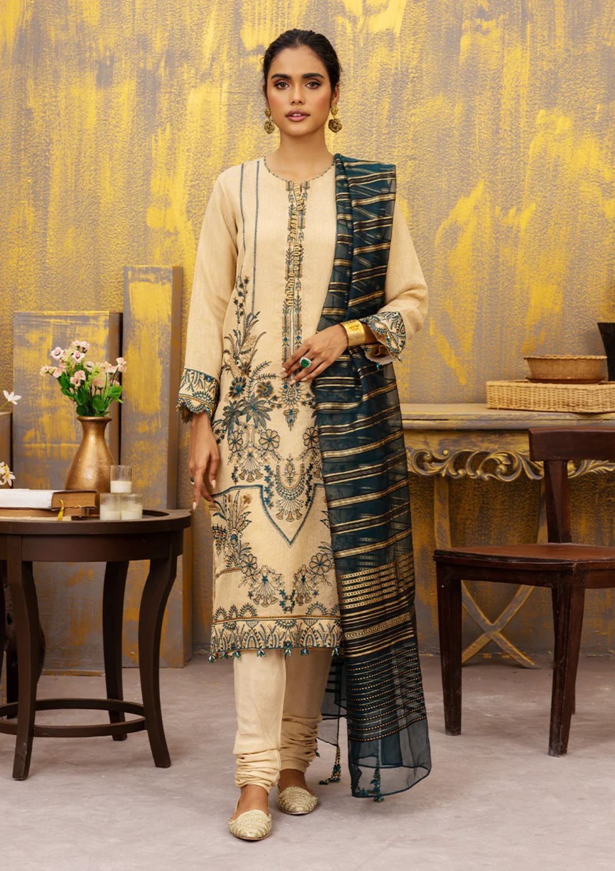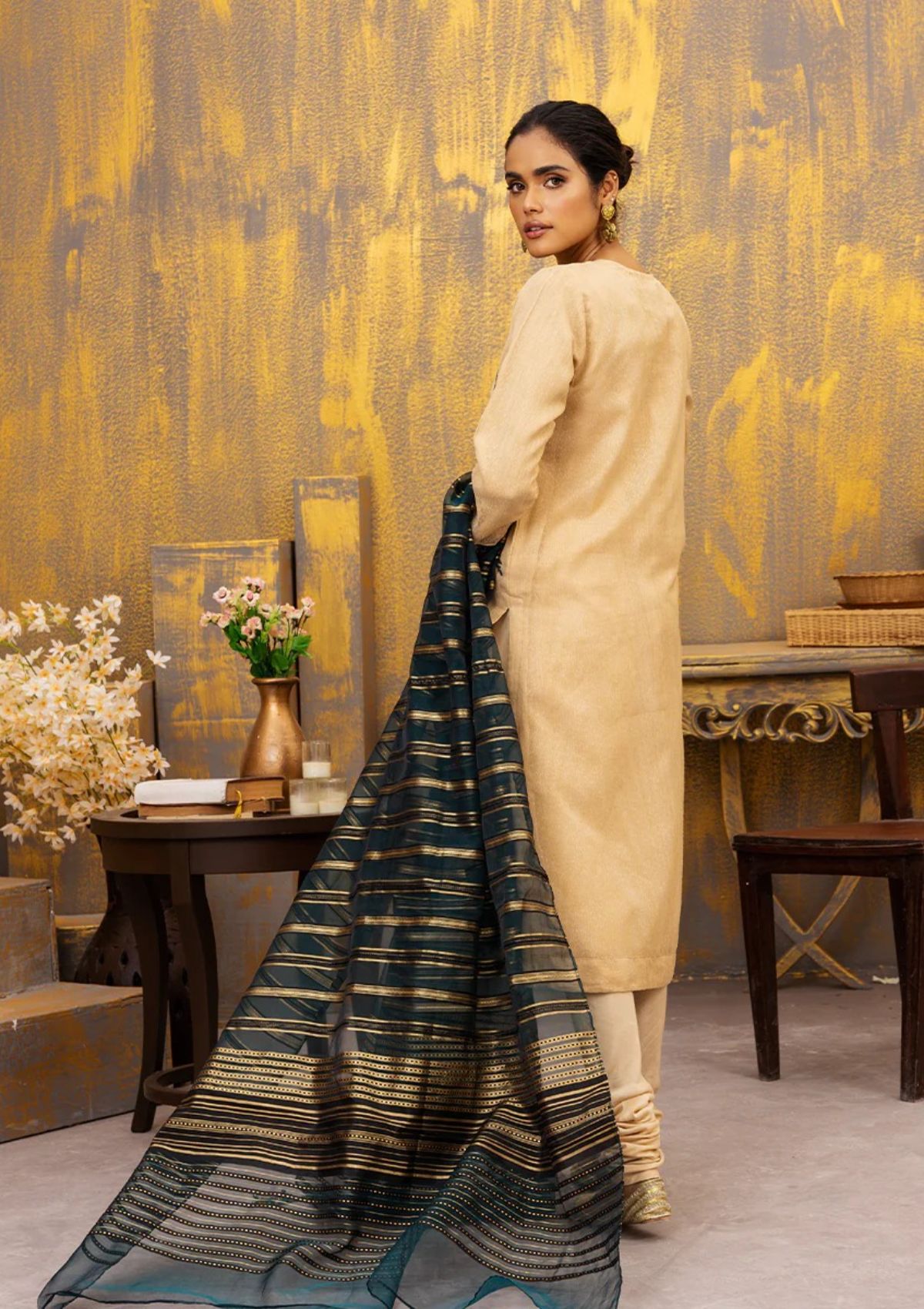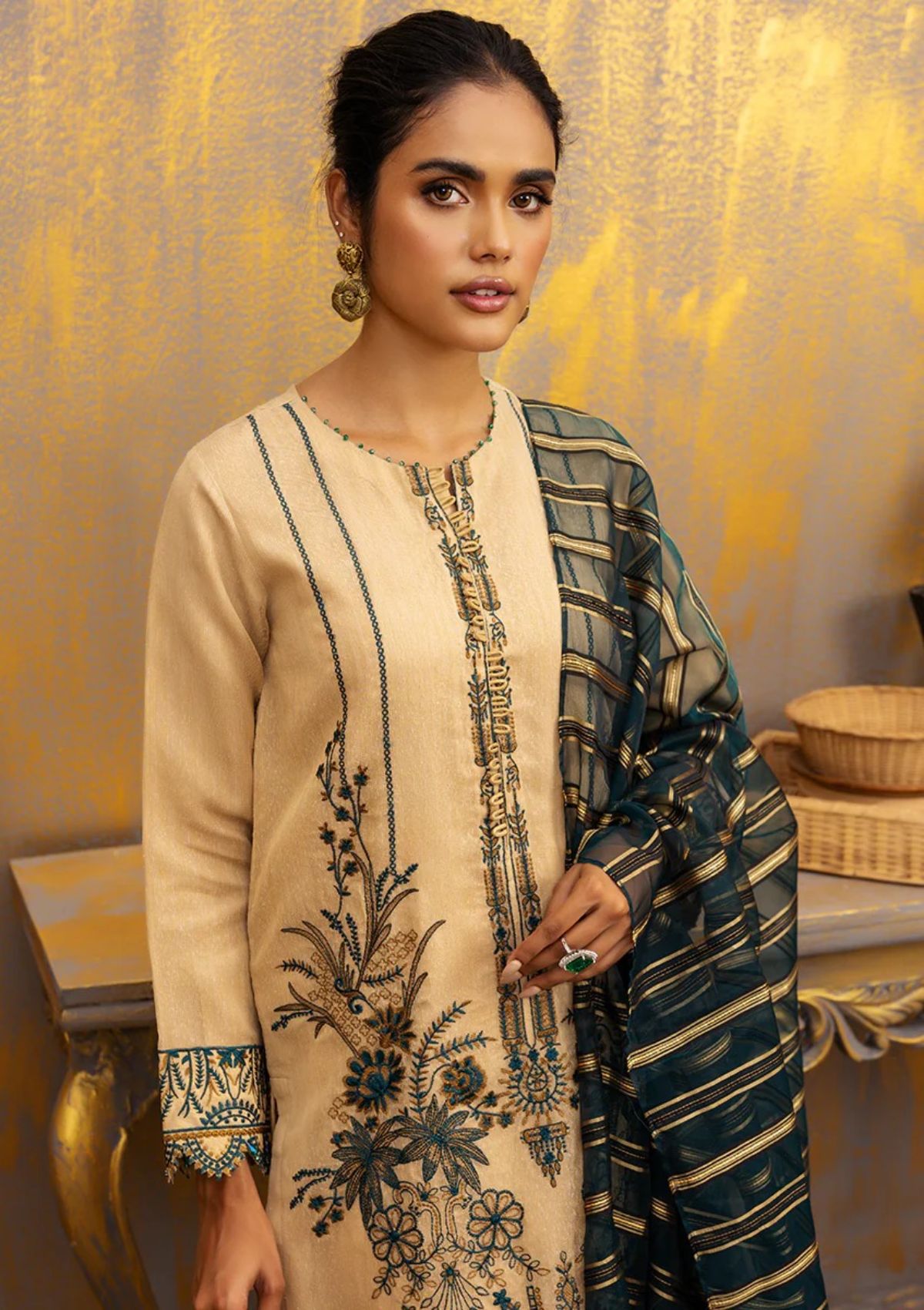 - Dupatta: Gold Zari Organza Duppata