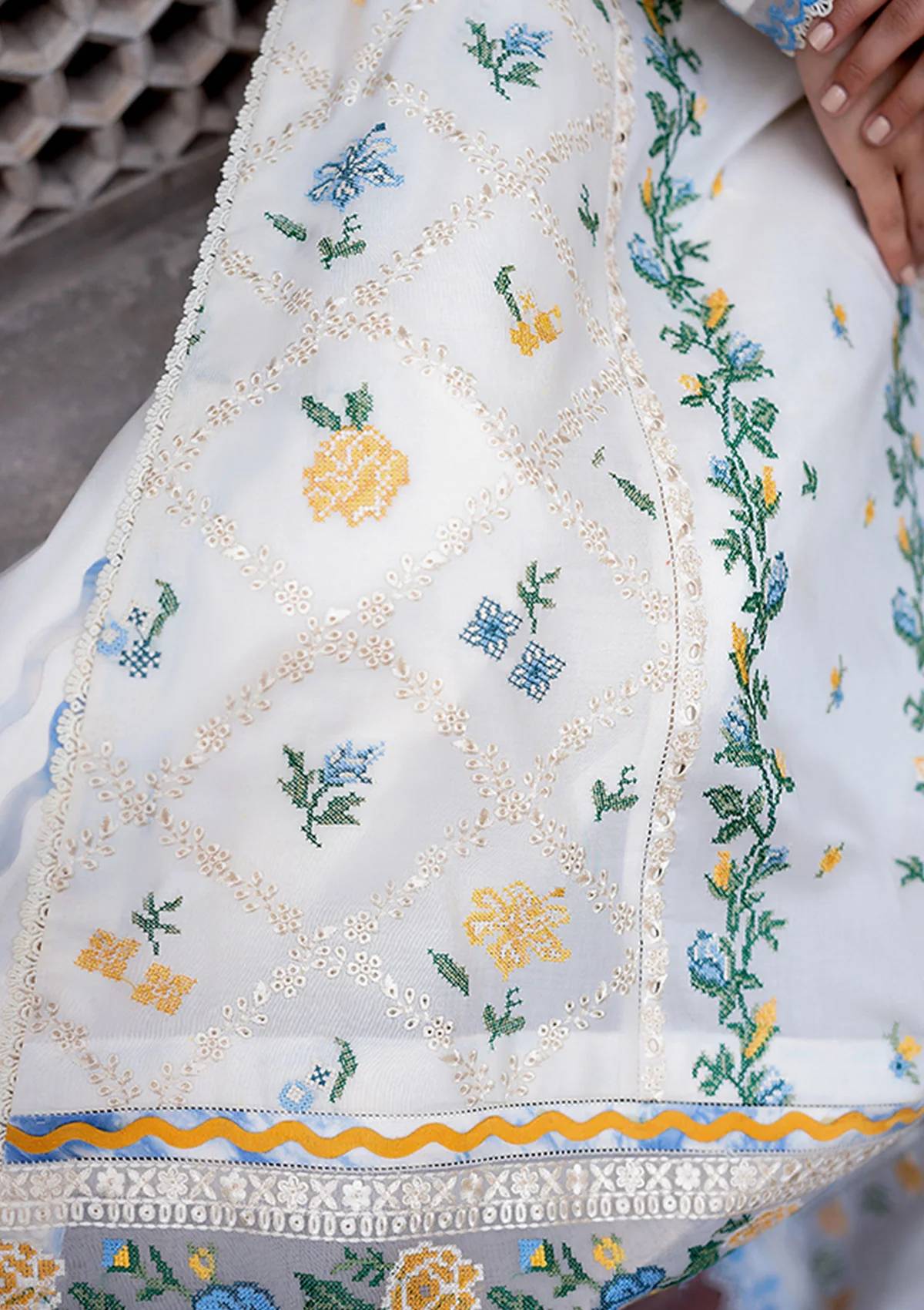Embroidered Dupatta Left & Right Pallu (Voil) 1 Pair