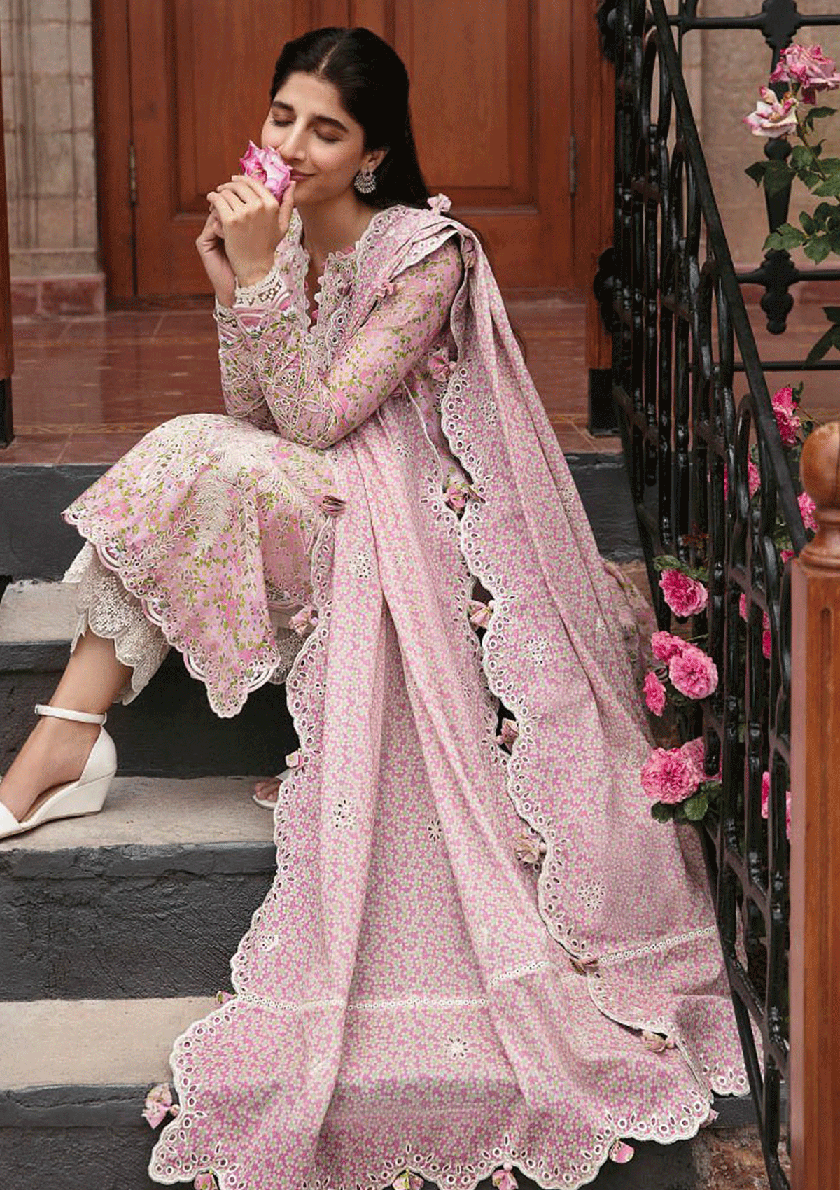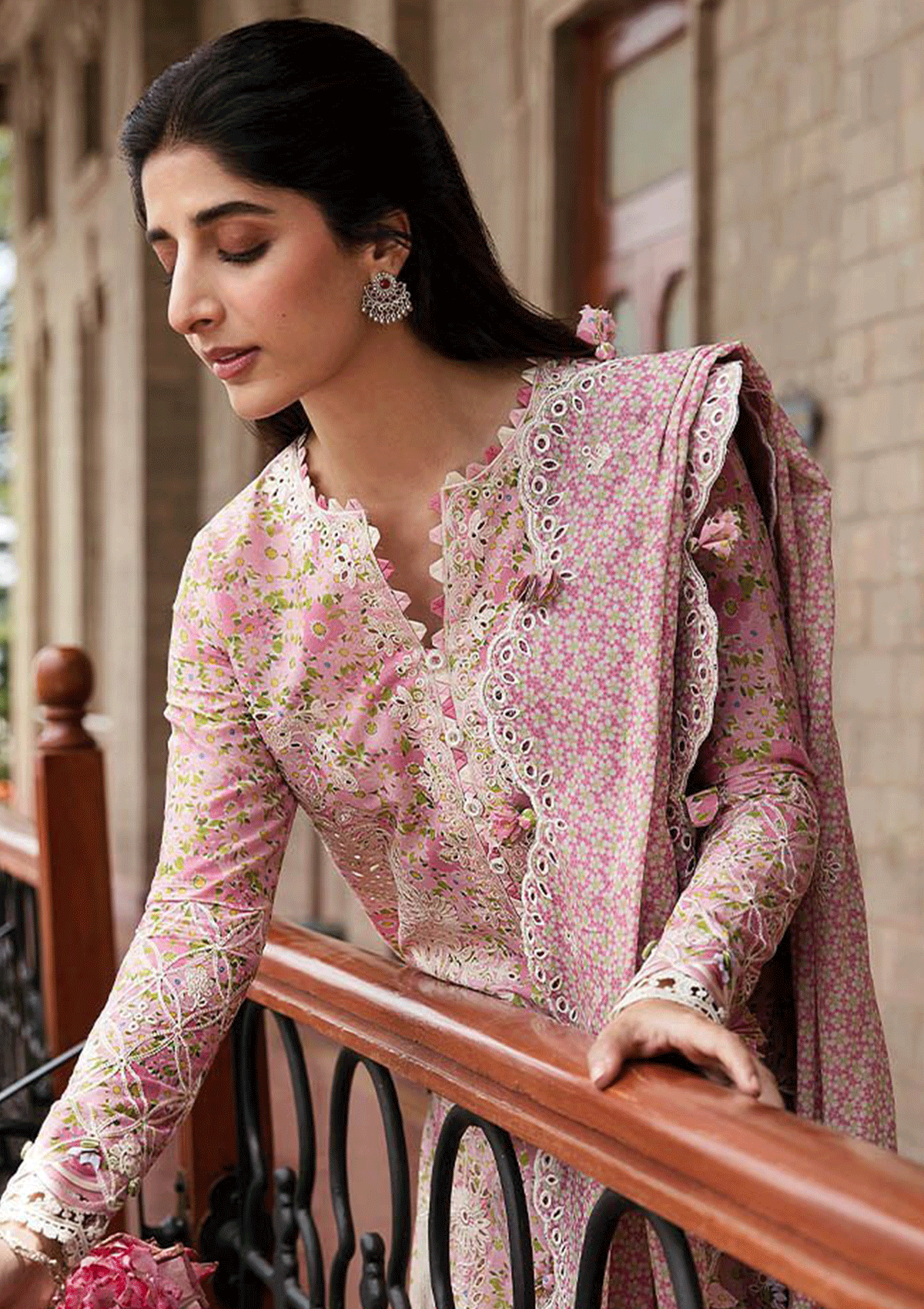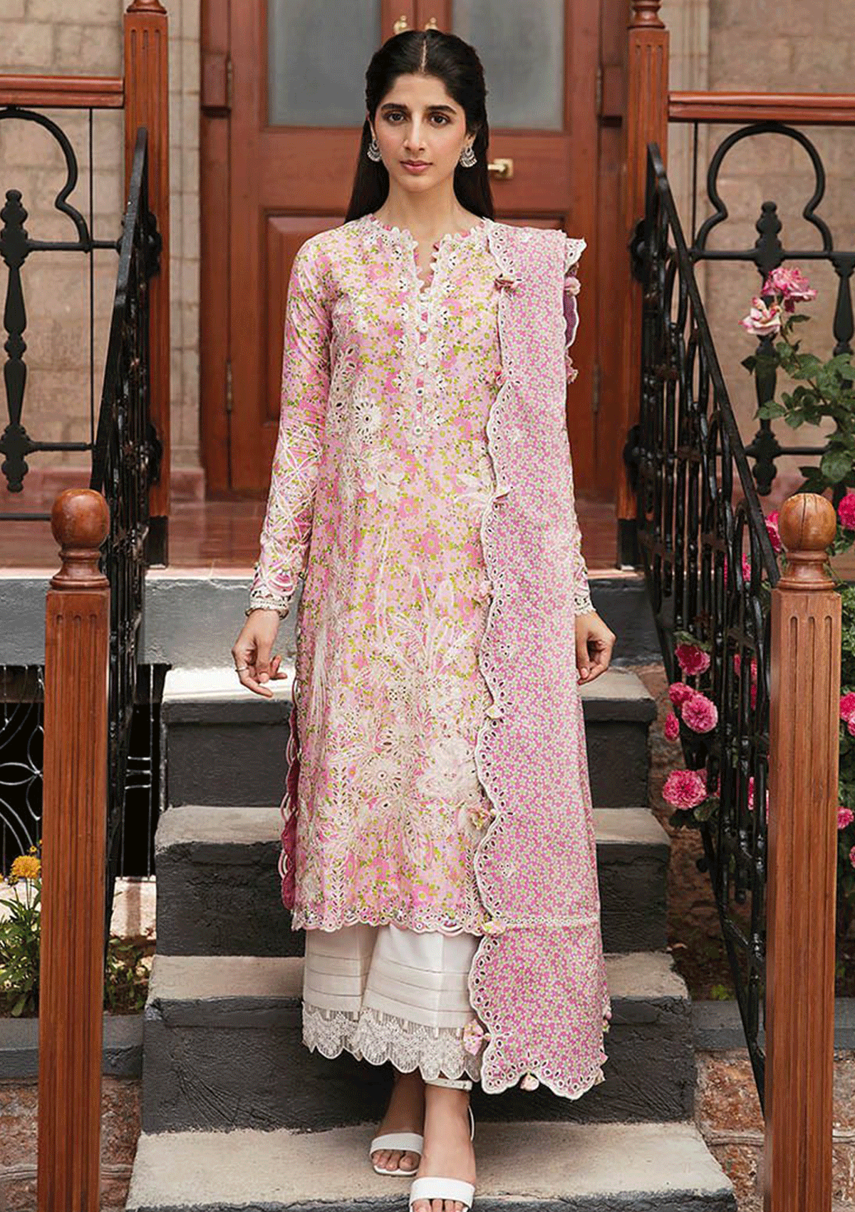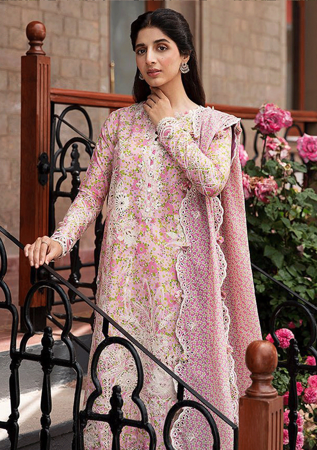- Digital Printed + Embroidered Front Right Panel (Lawn) Multi (Pink)1 Pc