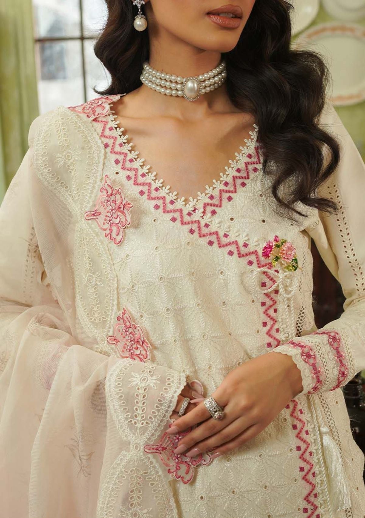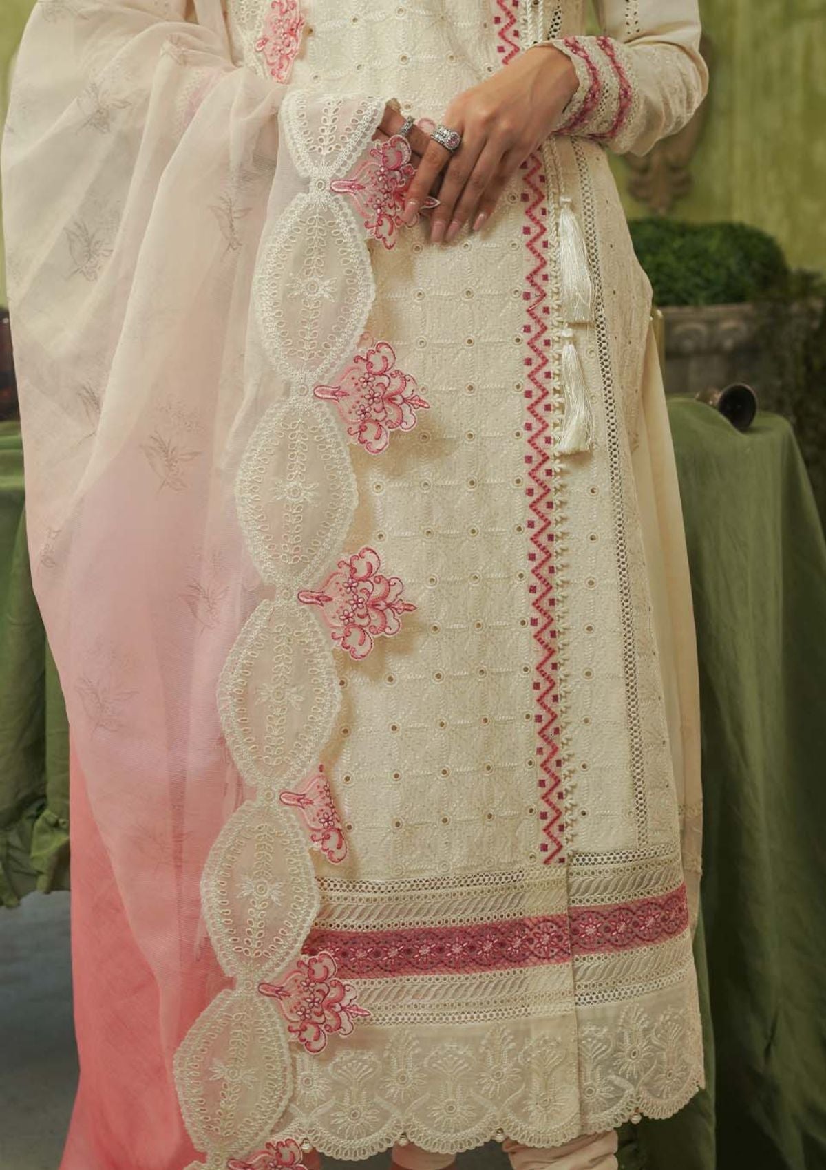 Experience the opulent allure of âÃÂÃÂIda': a tapestry of exquisite craftsmanship unveiled on an obsidian canvas adorned with intricate schiffli embroidery, glowing in the luminous hue of ivory. Each stitch tells a story of unparalleled elegance and sophistication. The shirt is further enhanced by an array of intricately embroidered borders in contrasting colors, adding depth and definition to the design. Paired with a stunning shaded digital print dupatta adorned with complimentary embroidery âÃÂÃÂIda' transcends traditional summer lawn aesthetics, offering a statement ensemble that exudes unparalleled style and sophistication.
