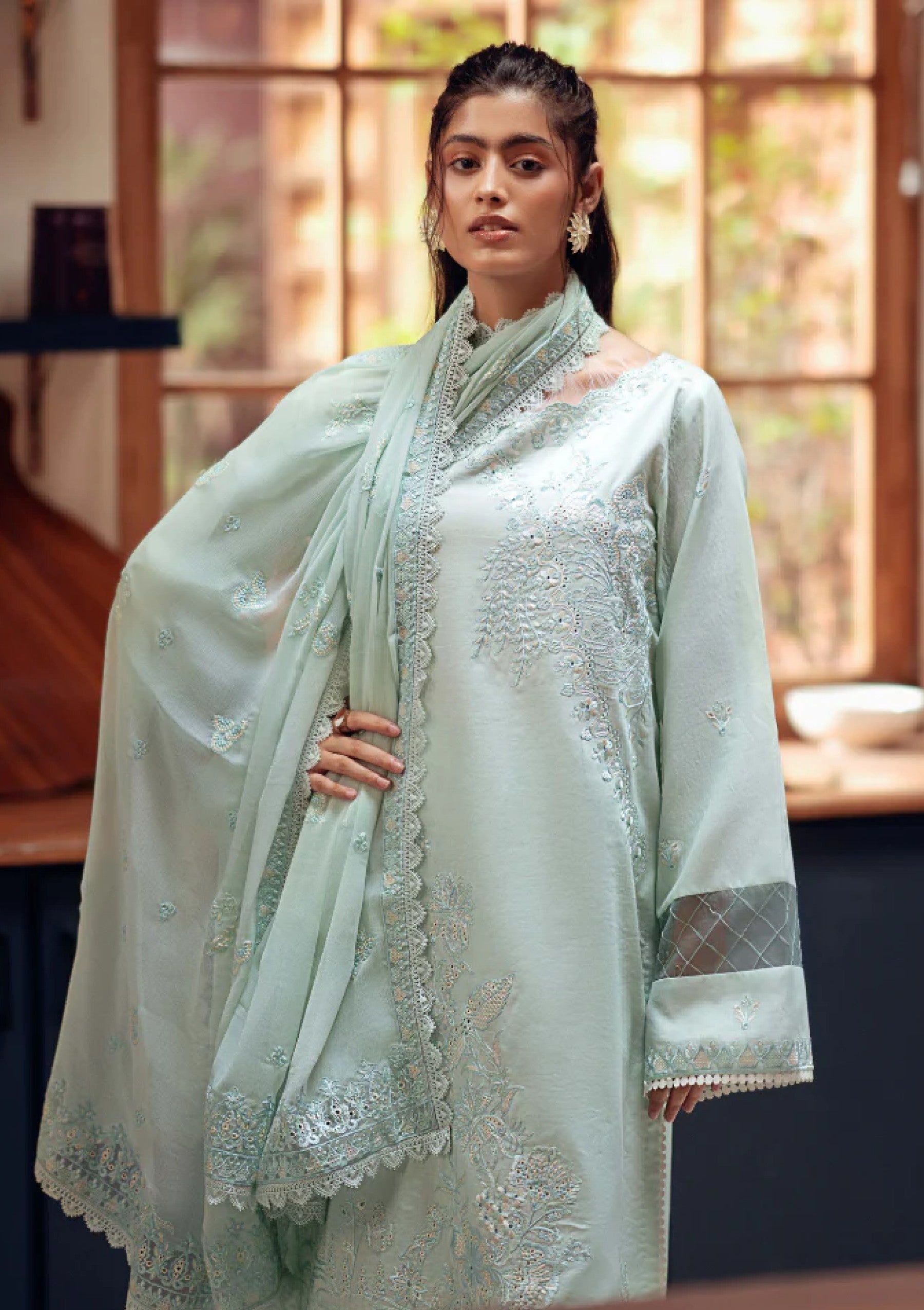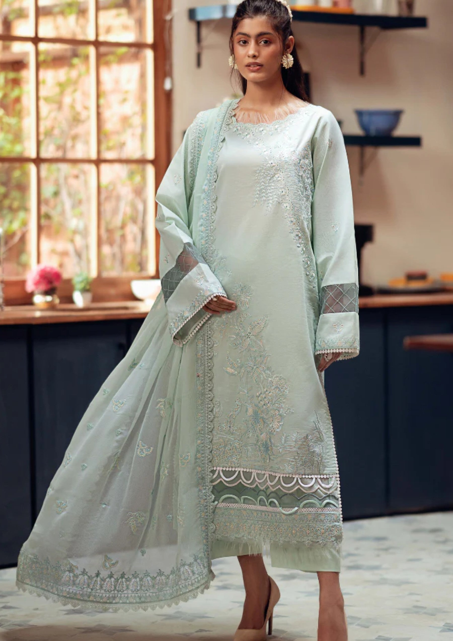 - Embroidered chiffon dupatta 2.5 Mtrs