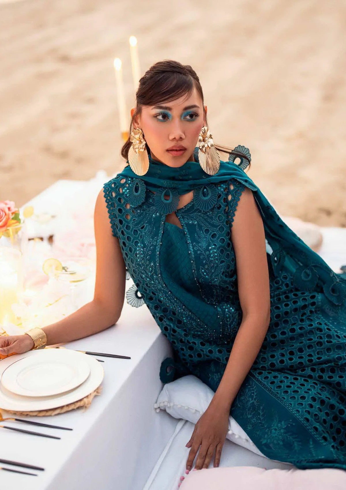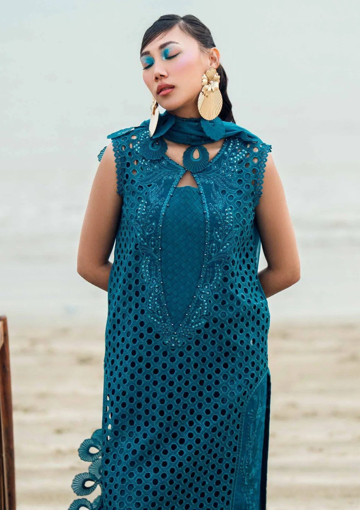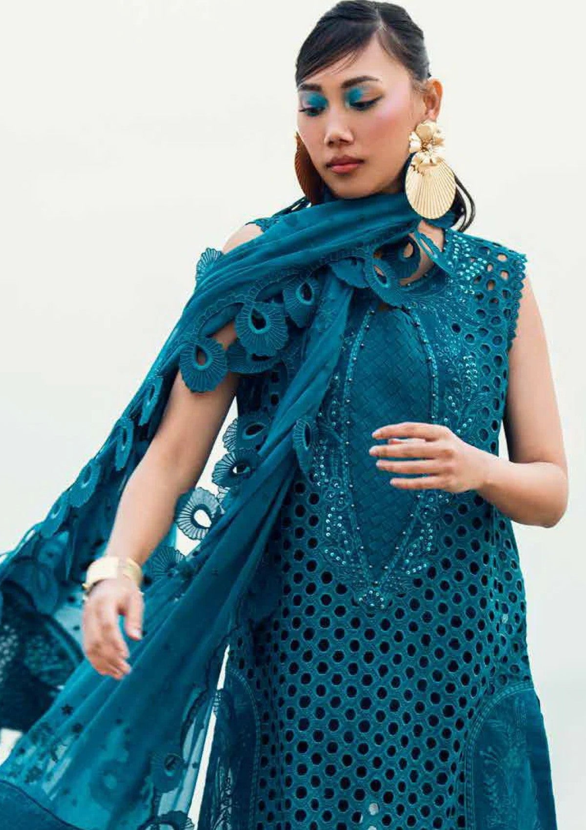 - Embroidered And Embellished Chikankari Swiss Voil Lawn Shirt With Lace Border