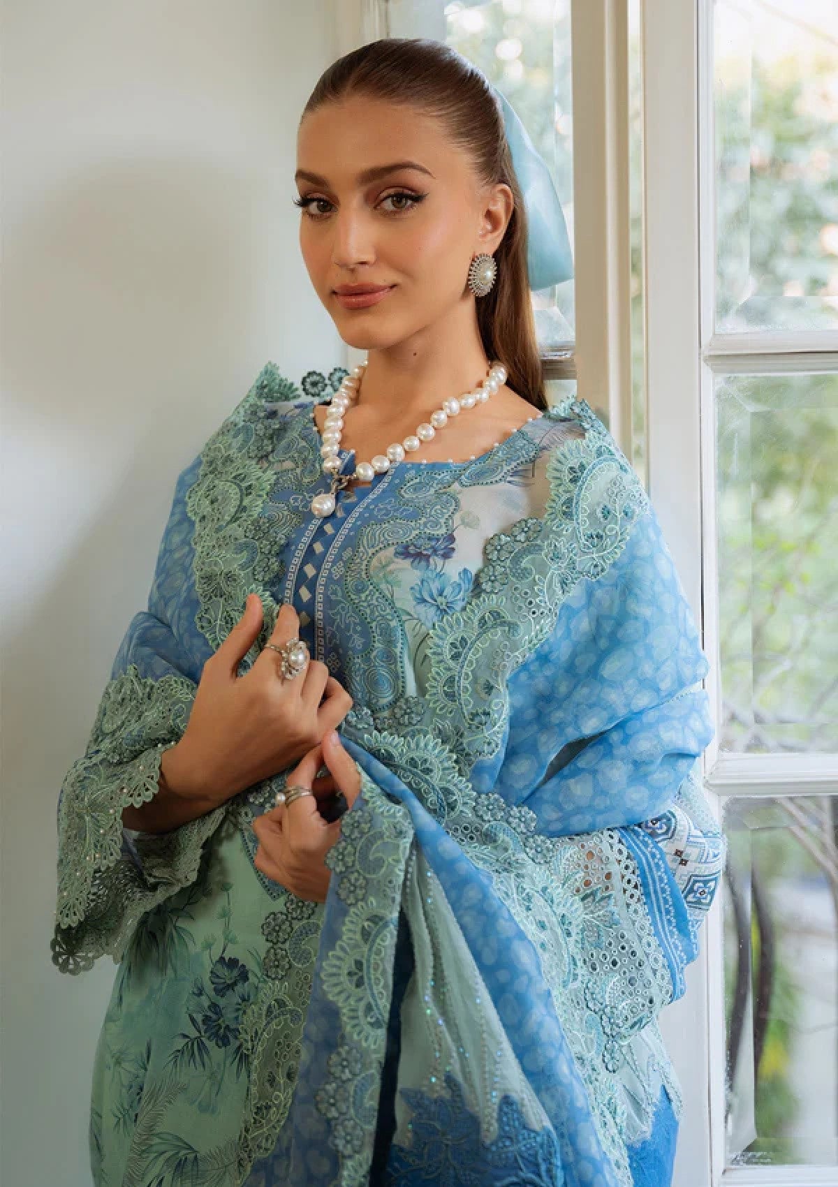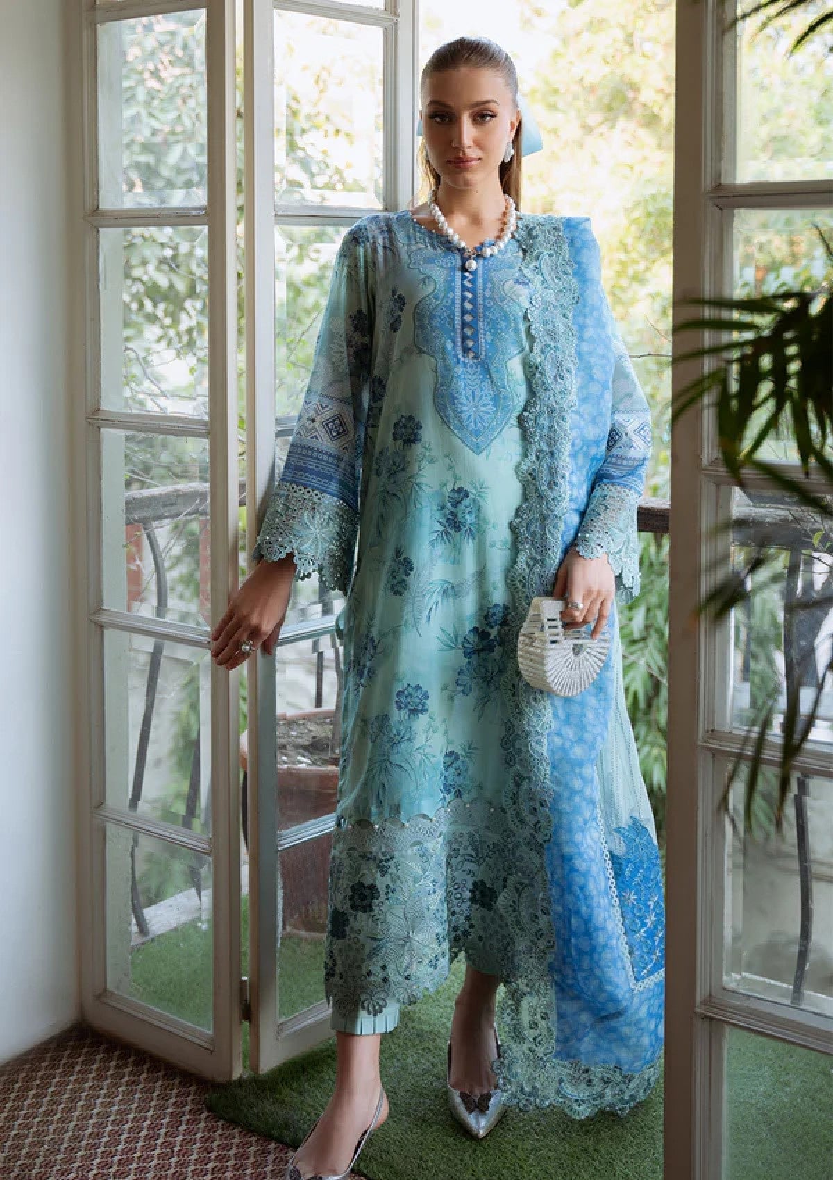- EMBROIDERED AND PRINTED SWISS LAWN SHIRT