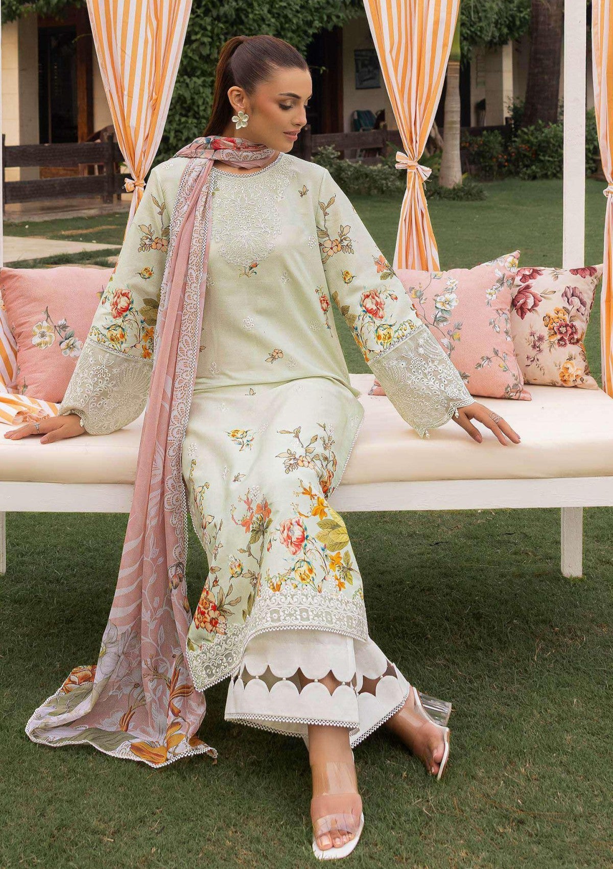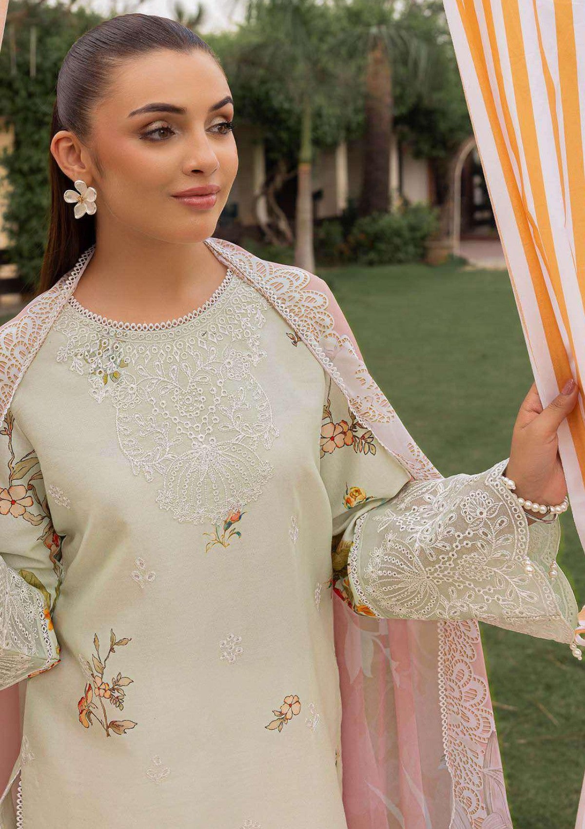 - Embroidered with Boring and Printed Lawn Front.