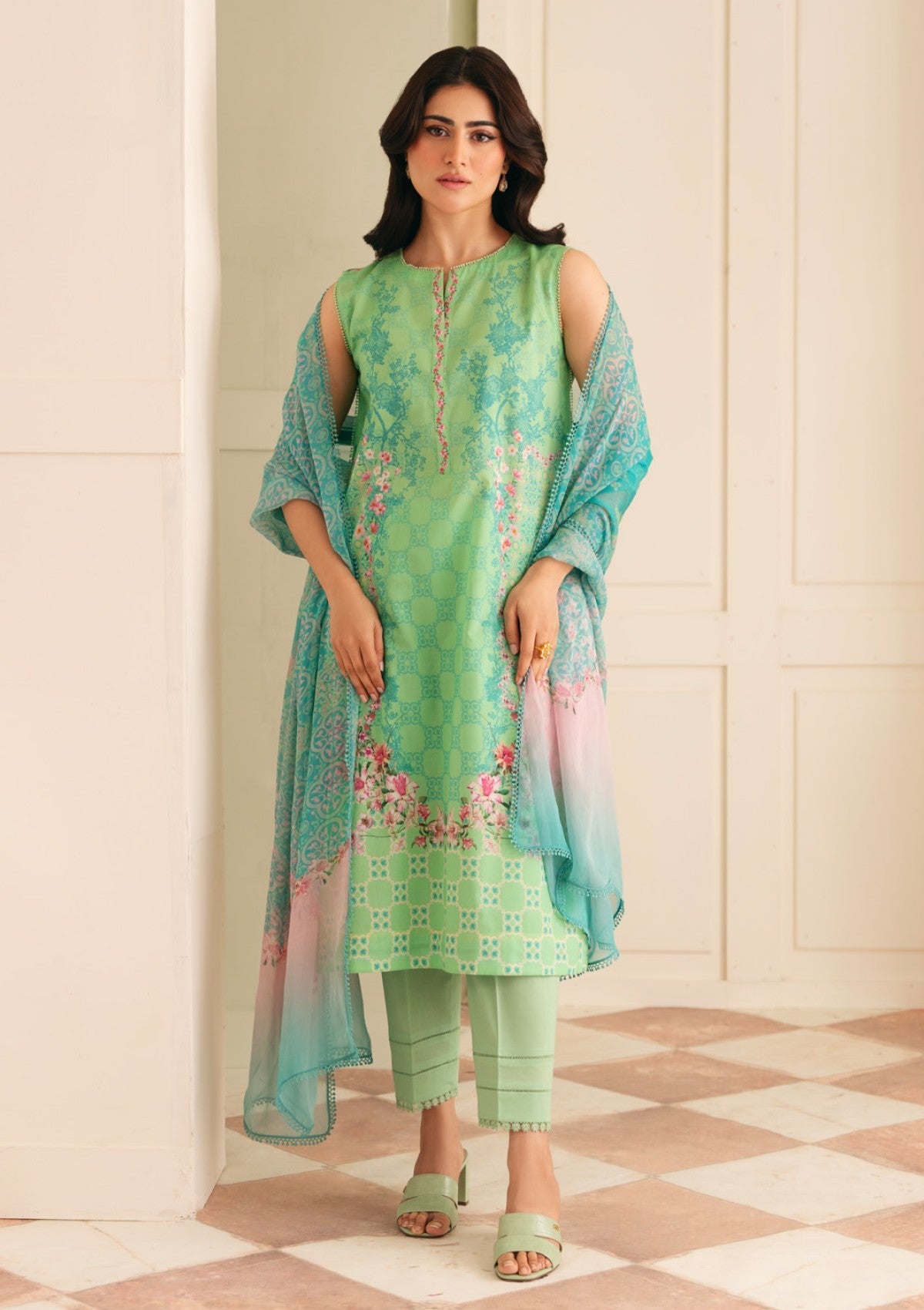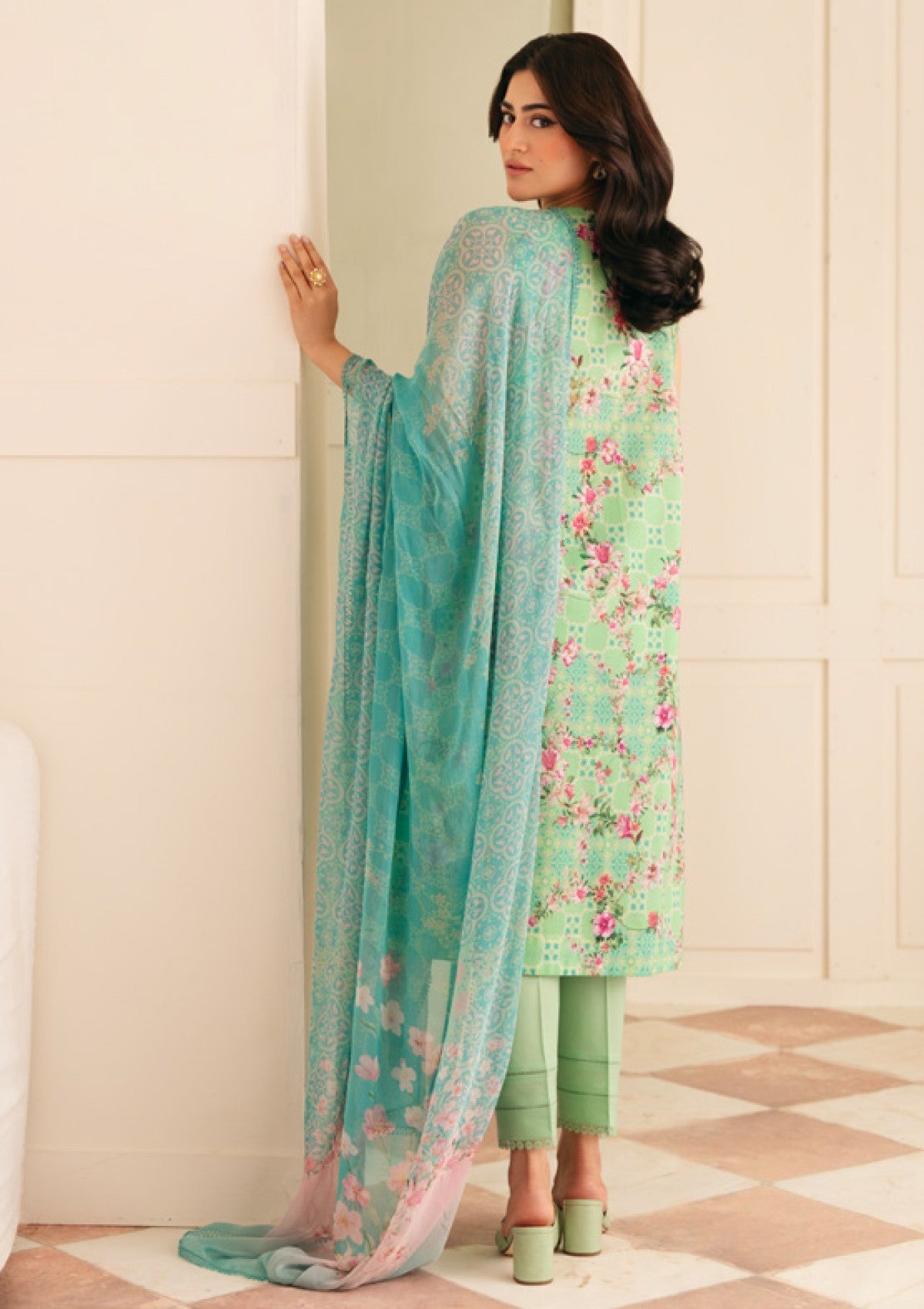 Lawn - Sahar - Selene Premium - 3 Pcs - SSP#11 - SEAFOAM GARDEN