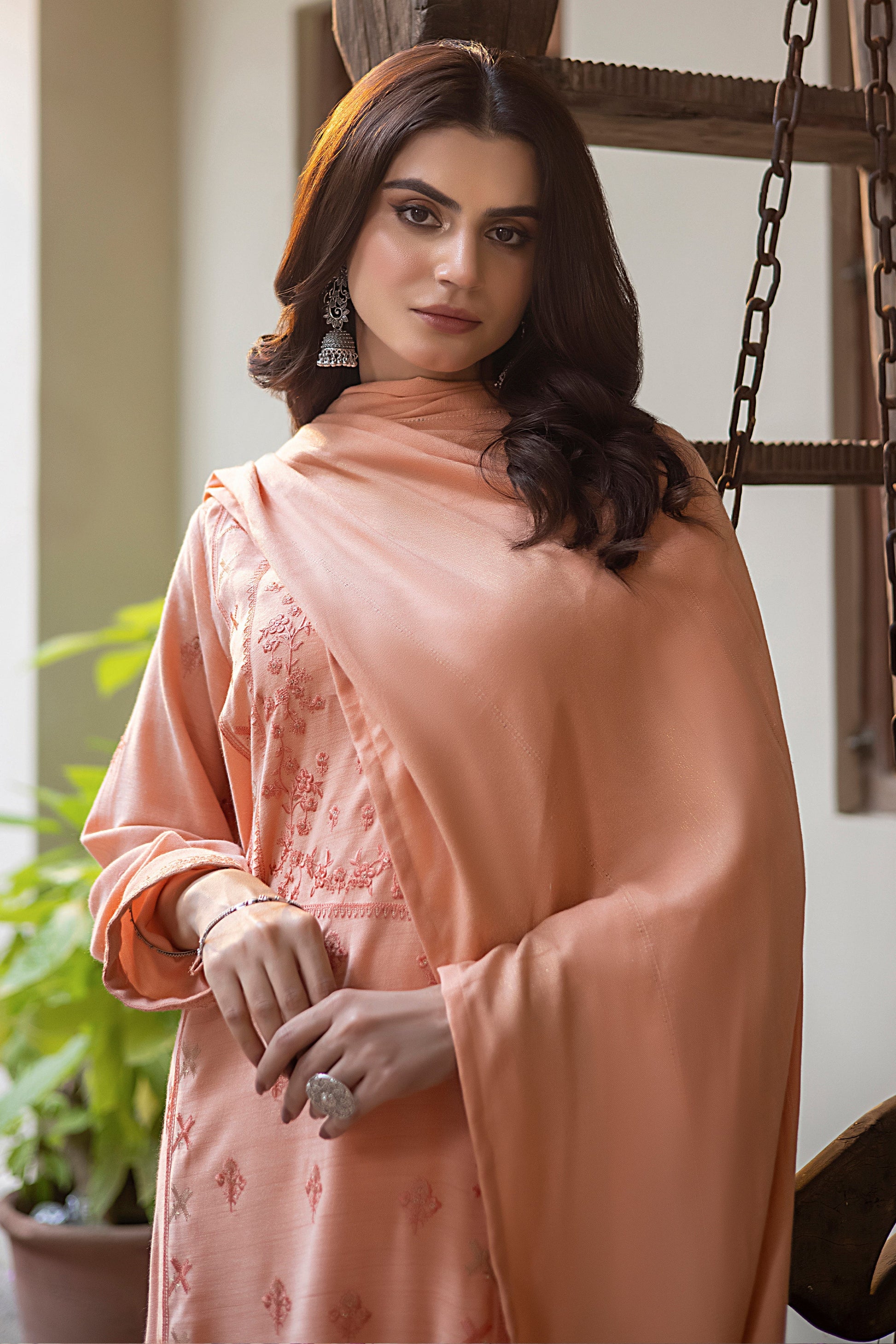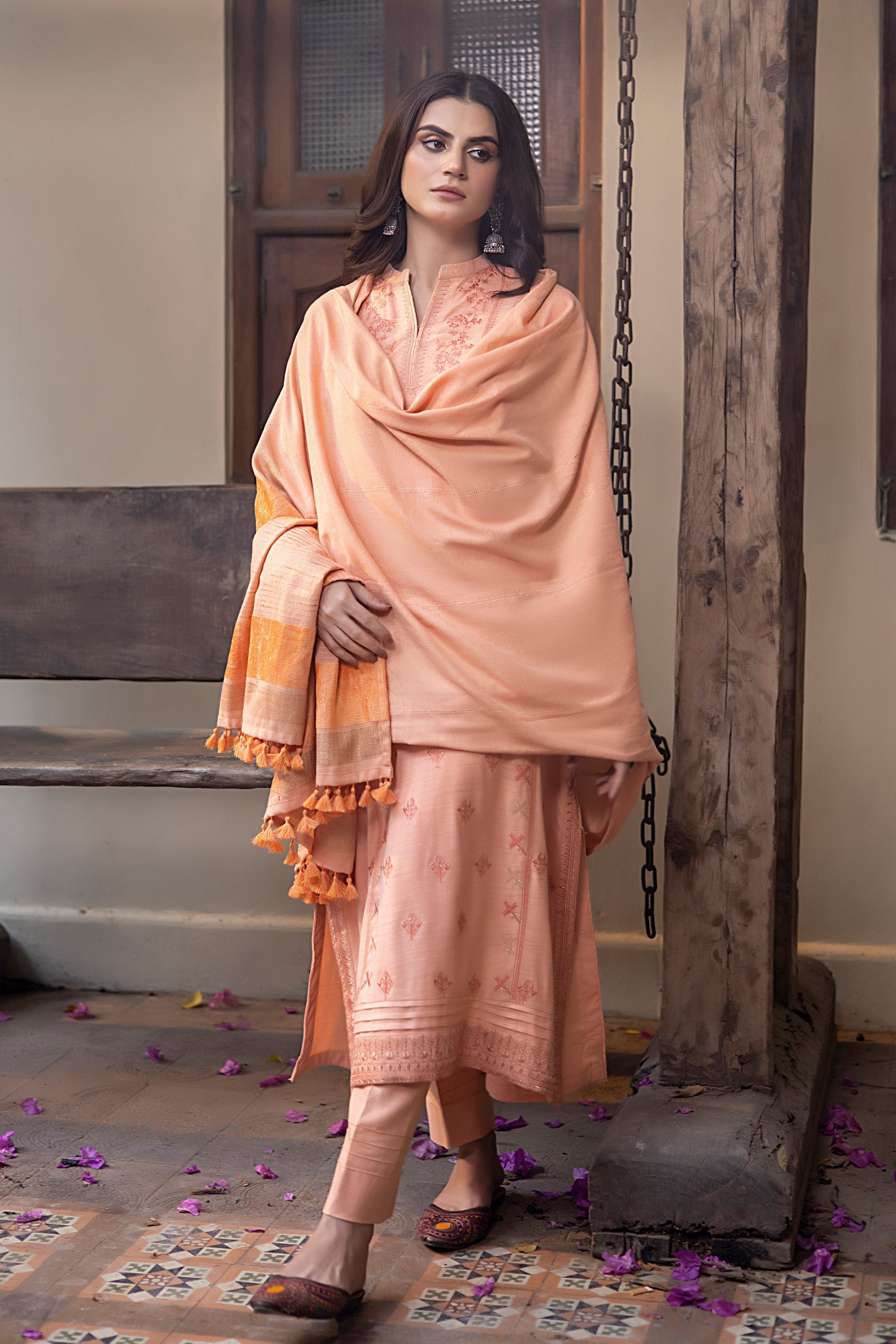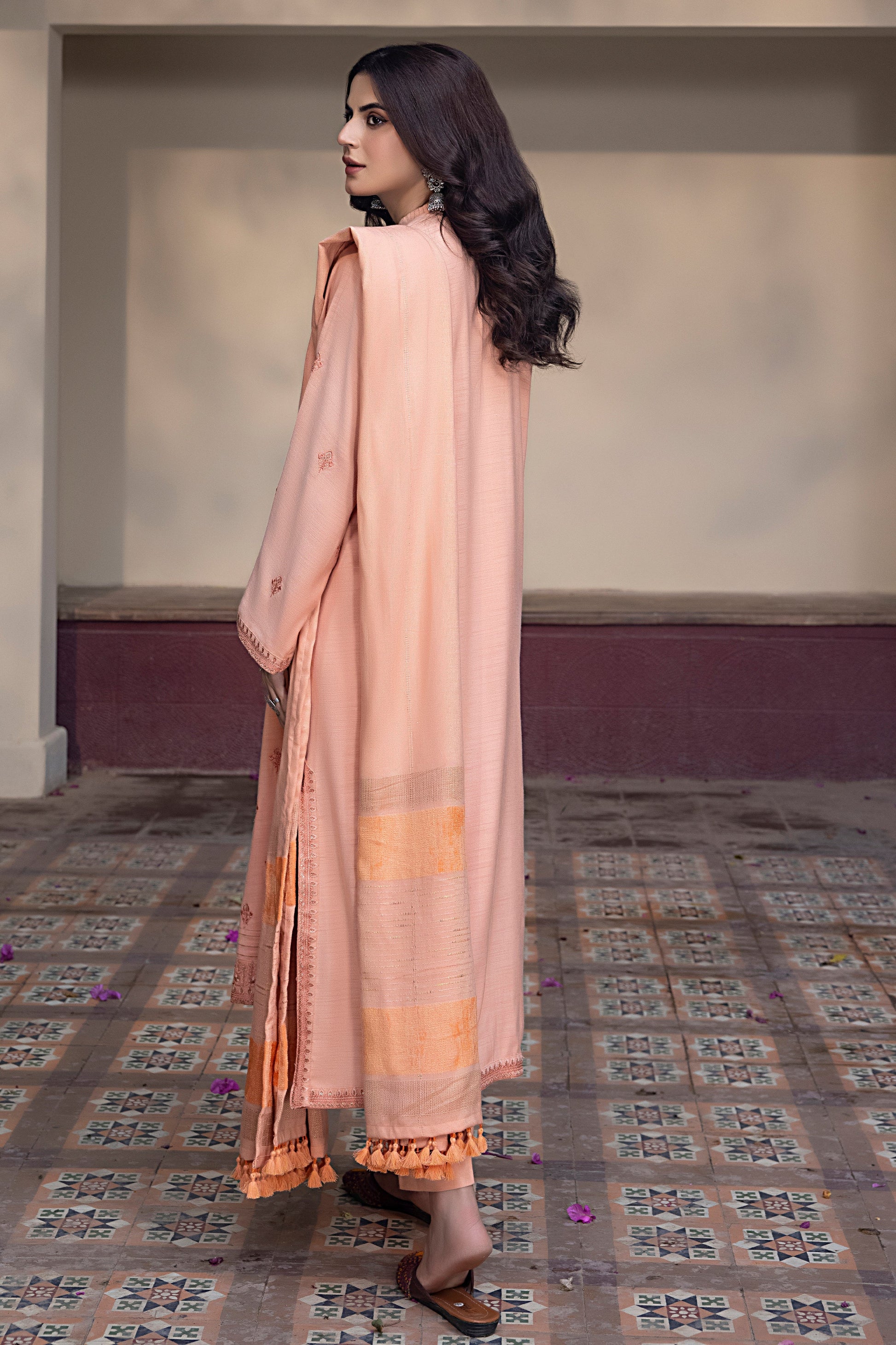 Shirt Front: Dyed Textured Emb Slub Peach 01 Piece ÃÂ
