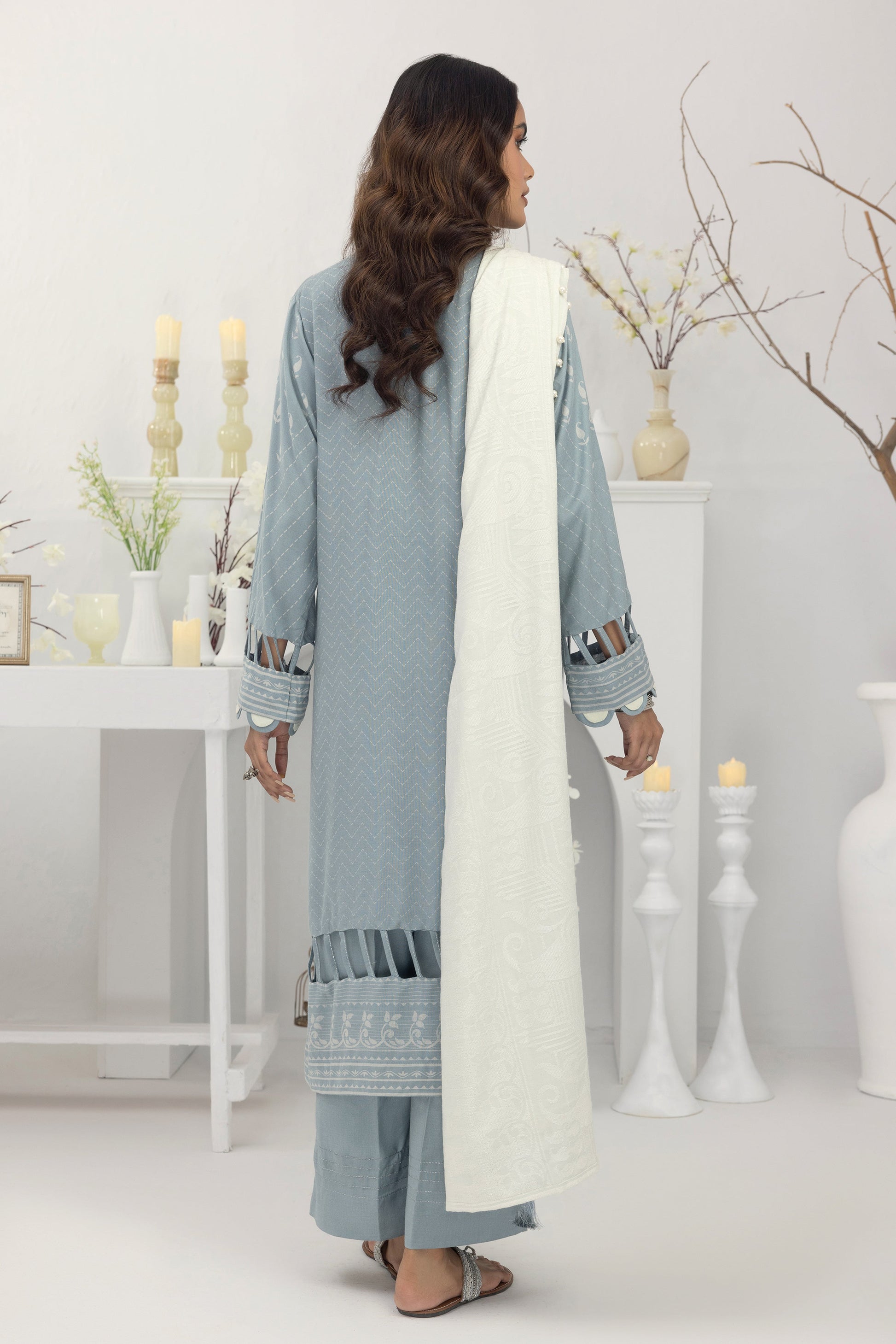 Color: Glacier blue With ash white shawl