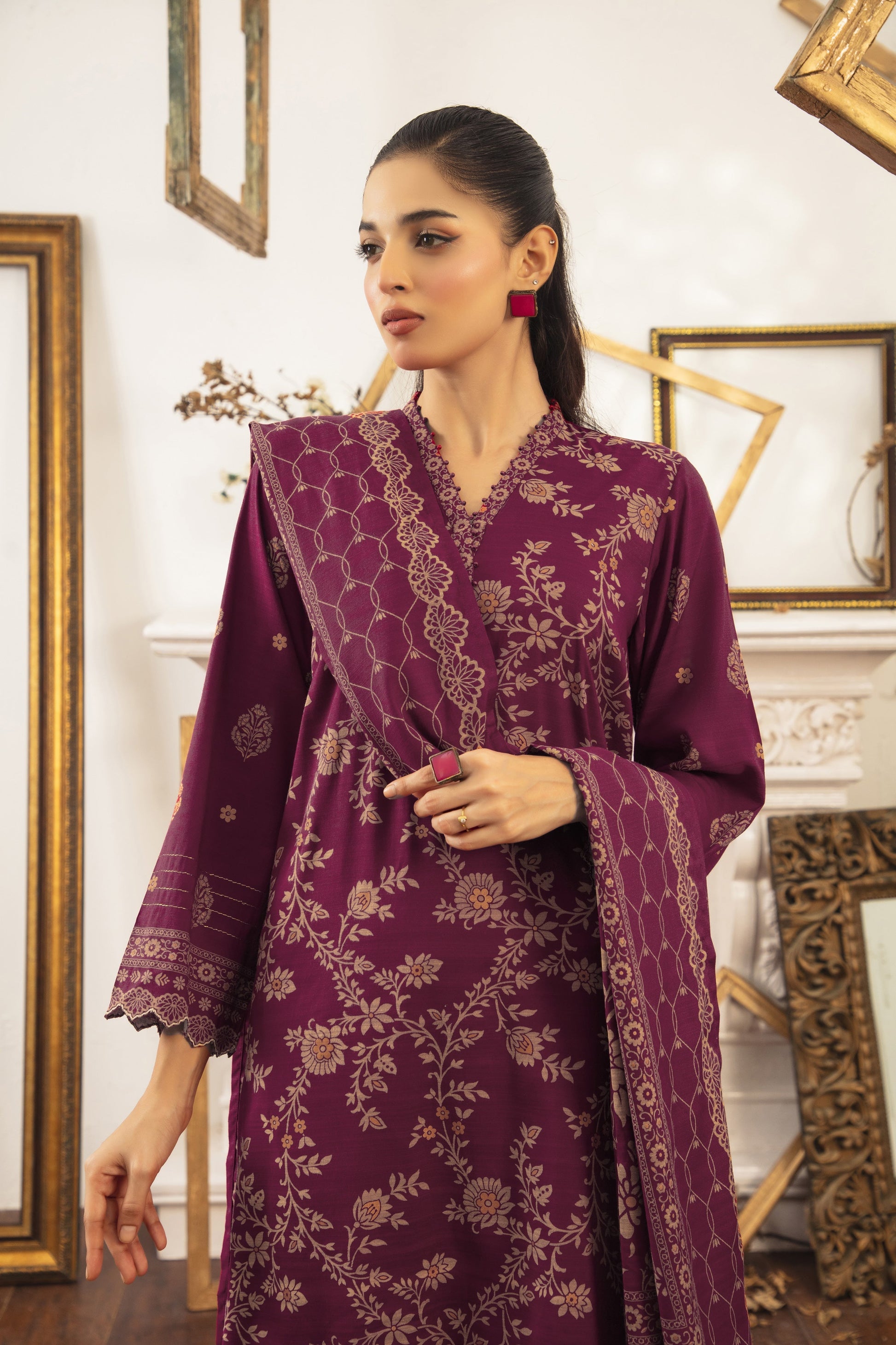 Dupatta: Textured Pearl Printed 01 Piece
