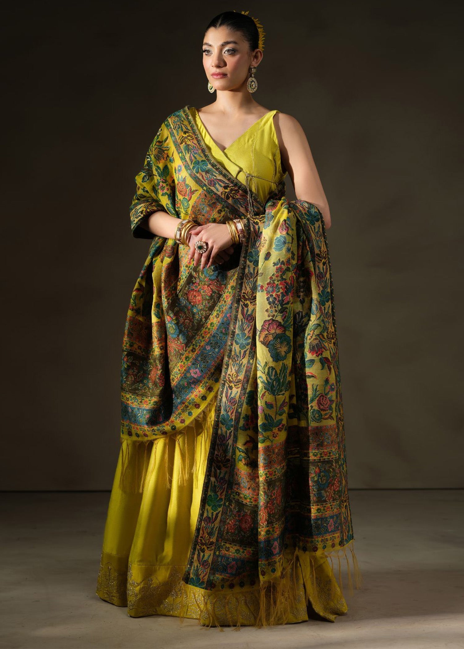 The Khaani shawl is a stunning piece, characterized by intricate patterns and rich colors that reflect traditional craftsmanship. This shawl features elaborate embroidery and weaving techniques that tell a story or represent cultural heritage. The Khaani shawl can be draped elegantly over any outfit, adding warmth and a touch of sophistication. Whether it's for a formal occasion or a casual outing, itss a versatile accessory that enhances any look beautifully.