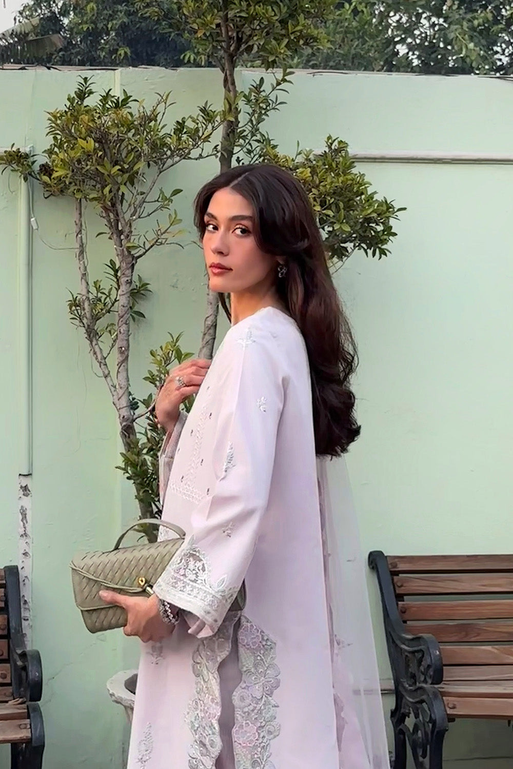 Grace meets gracefulness in this 3-piece pret ensemble, rendered in the soothing shade of Dream Blue. The lawn shirt features a refined crew neckline, accentuated with delicate chatta patti piping for a hint of tradition. A straight, fully embroidered silhouette is brought to life with organza-embroidered borders adorning the sleeves, sides, and hem for a touch of artisanal charm. The straight cambric cotton trousers are thoughtfully detailed with an embroidered border, blending comfort with elegance. Completing the ensemble is a dreamy net dupatta, edged with four-sided embroidered borders, adding lightness and finesse to this timeless look.