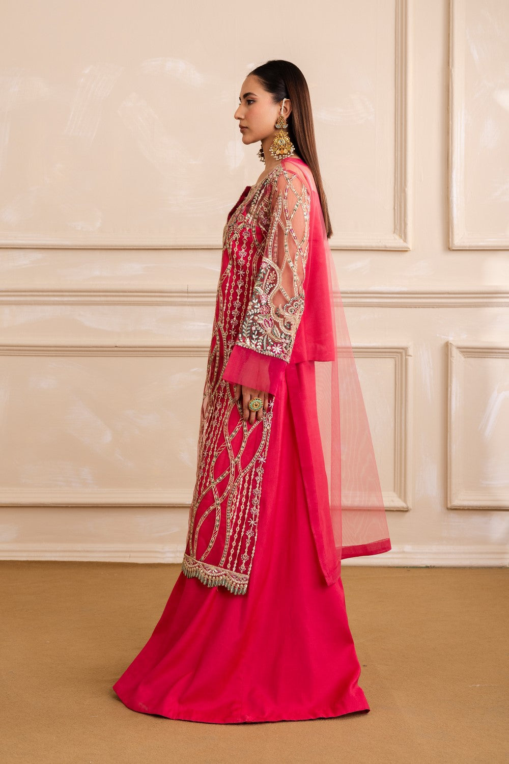 Radiate vibrant charm with our Pink Punch two-piece pret, showcasing a chic Net fabric shirt paired with tailored Grip trousers. This playful yet polished ensemble effortlessly blends bold color and modern texture, perfect for turning heads with confidence.