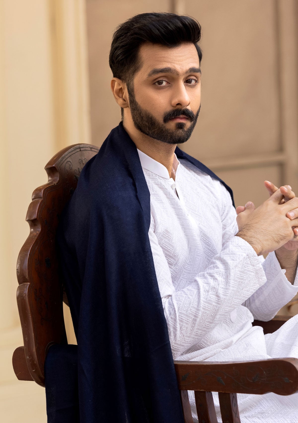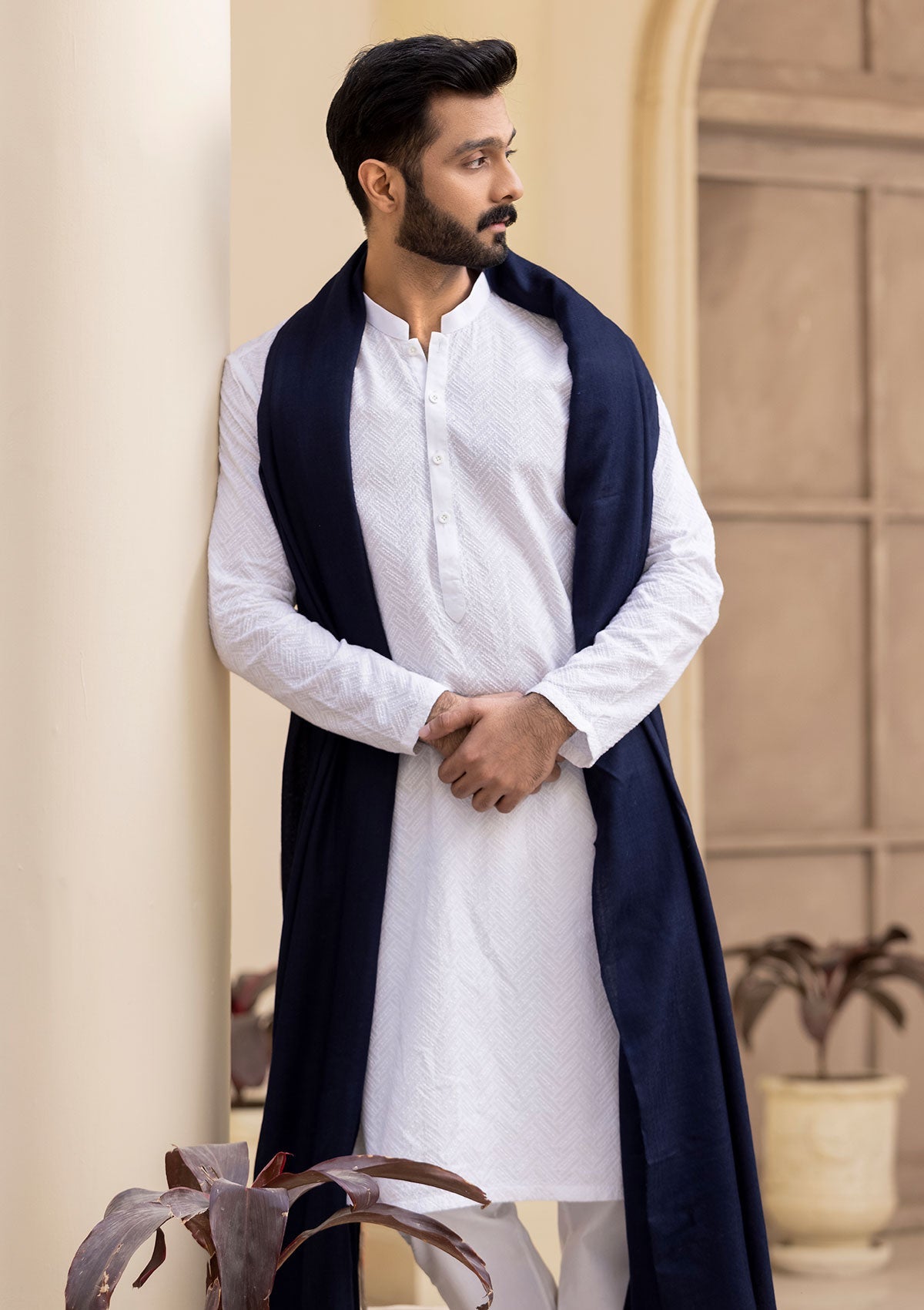 Men Shawls - Wool Shawls - D#234 - N Blue