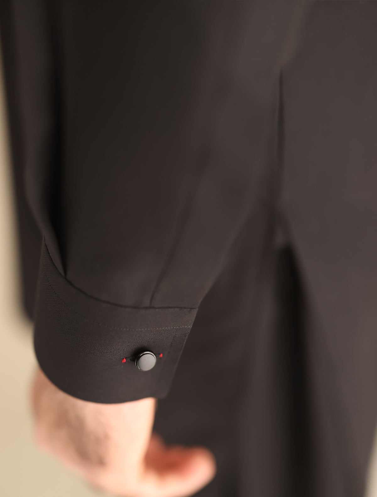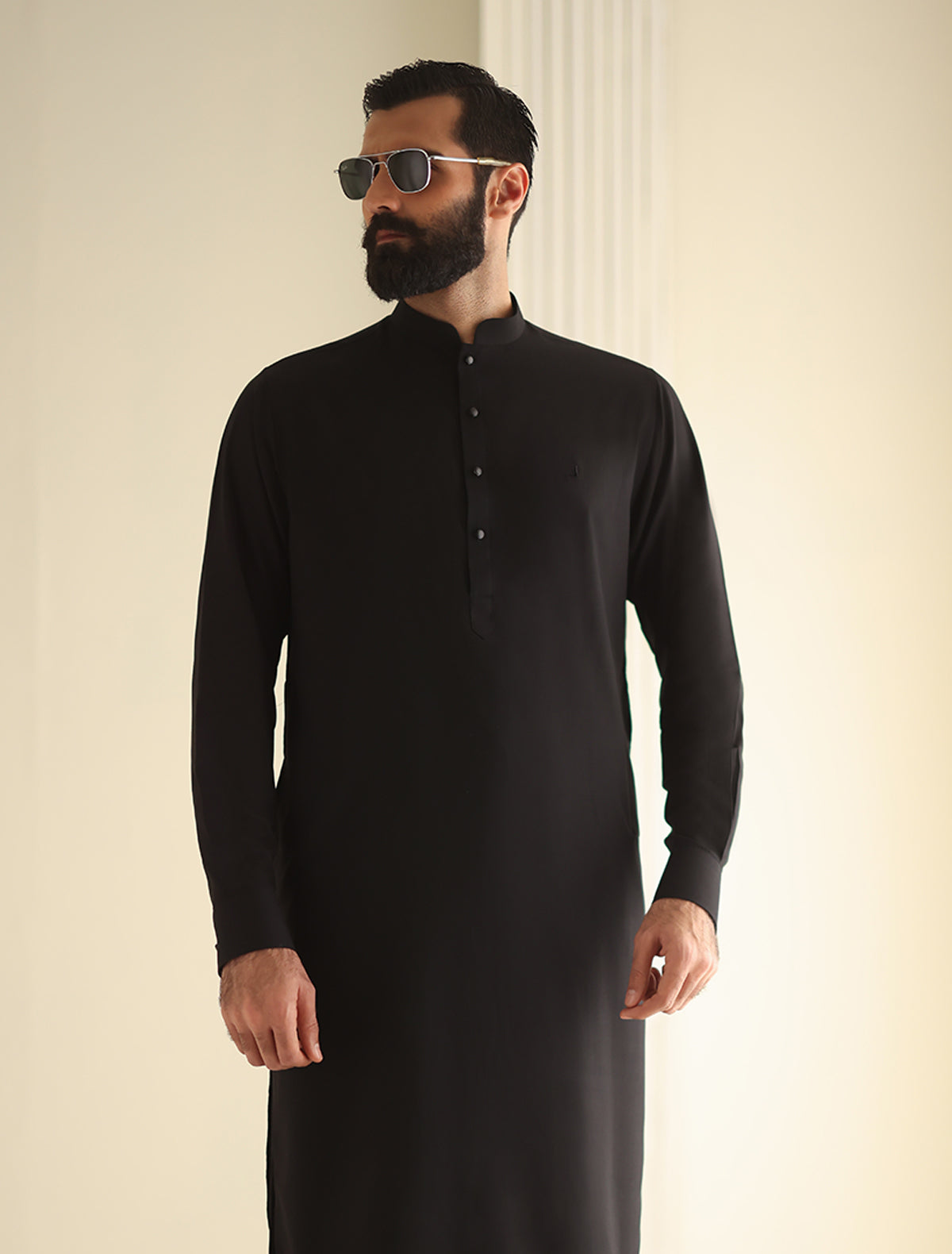 Pakistani Menswear | Ismail Farid - BLACK MANDARIN COLLAR KAMEEZ SHALWAR