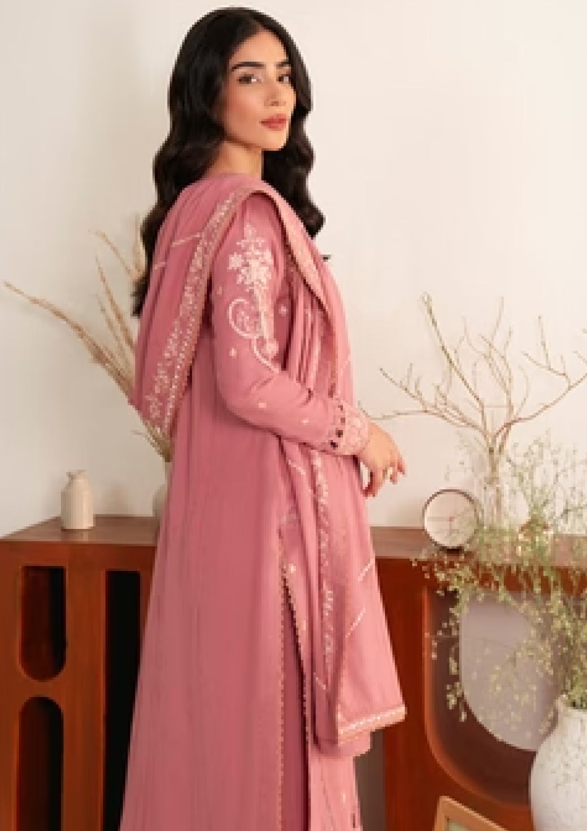 - A perfect harmony of softness and sophistication. This exquisite pink ensemble is beautifully embroidered on the front and sleeves, creating a delicate yet striking look. Paired with a matching karandi shawl embroidered in subtle tones, Pink Reverie adds a touch of serene elegance to your winter wardrobe, making it an effortless choice for those who appreciate quiet luxury.