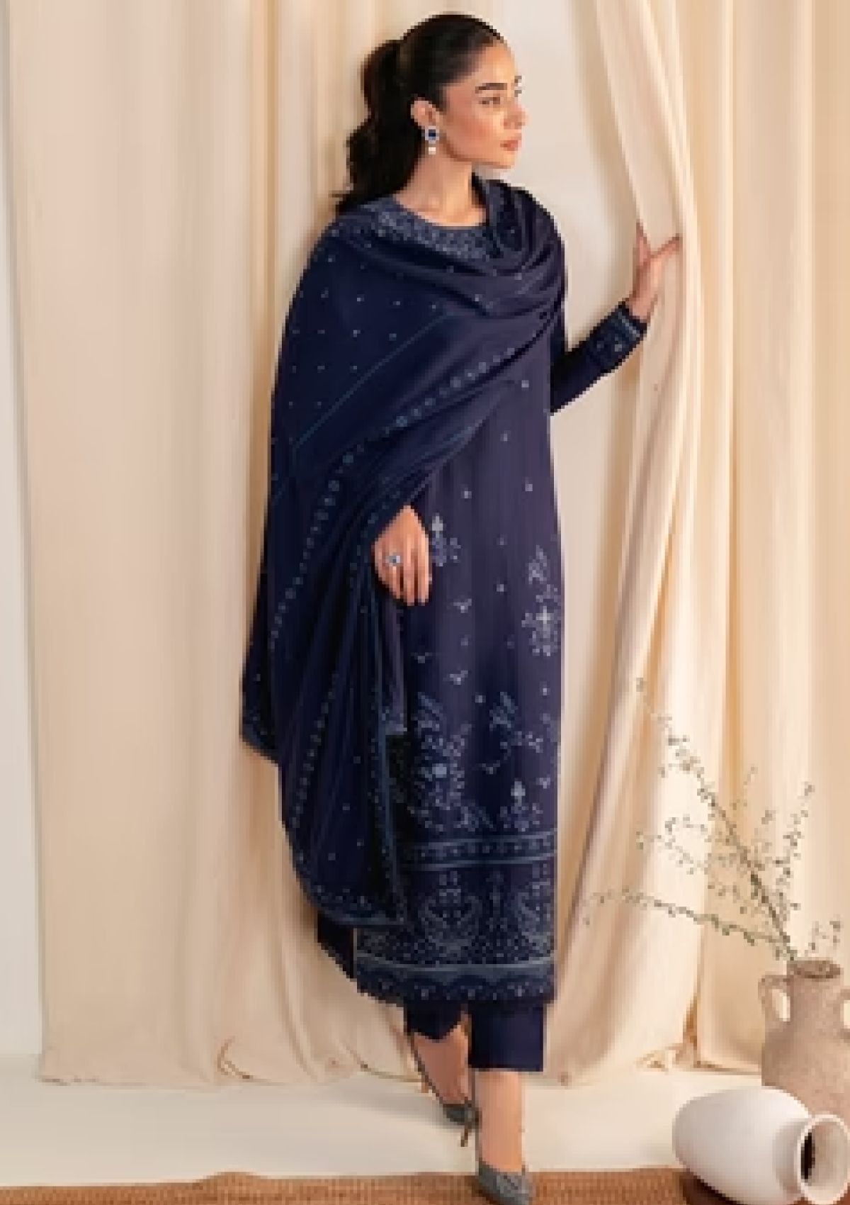 - Introducing Sapphire Blue from the FALL PRET'24 collection, a timeless navy blue karandi outfit that embodies understated elegance. Adorned with intricate embroidery in tonal blues, the design reflects sophistication with a winter charm. The ensemble is paired with a coordinating karandi shawl, featuring beautifully embroidered four-sided borders, adding a touch of finesse. Perfect for cozy winter days or evening gatherings, Sapphire Blue strikes the perfect balance between comfort and grace.