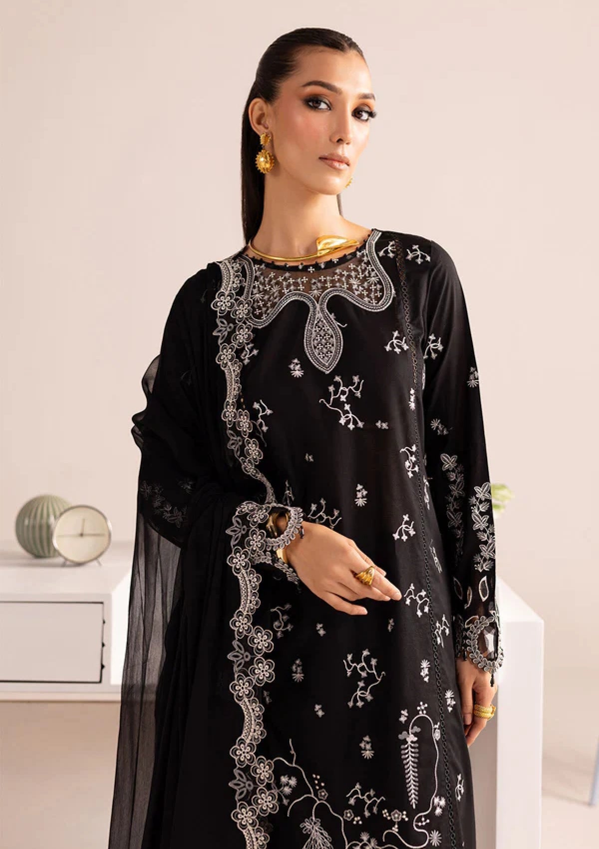 Embroidered Lawn Shirt Paired With Embroidered Chiffon Dupatta And Dyed Cotton Trouser