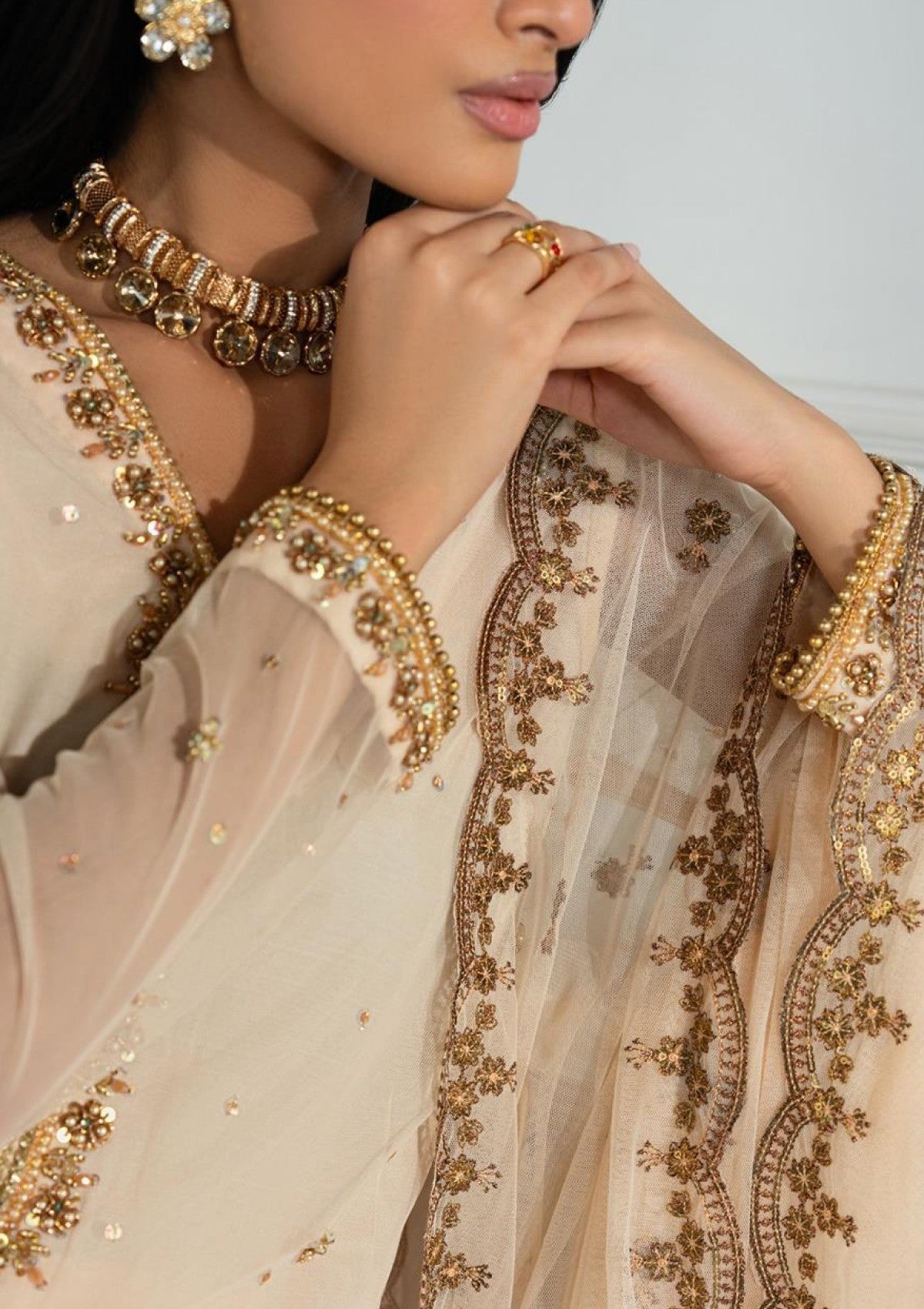 Work Technique: Embroidered and Hand Embellished Net