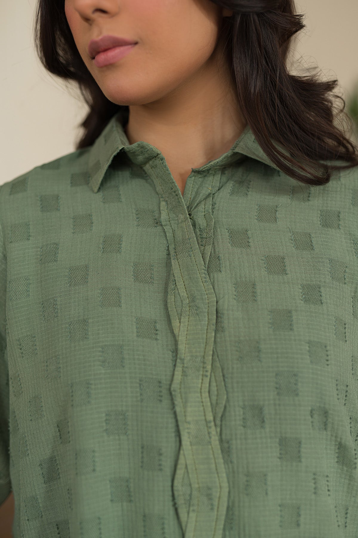 Elevate Your Style This Season With This Exquisite Co-Ord Set, Featuring A Jacquard Shirt With A Zic Zac Placket And Classic Collar, Paired With Straight-Cut Trousers.