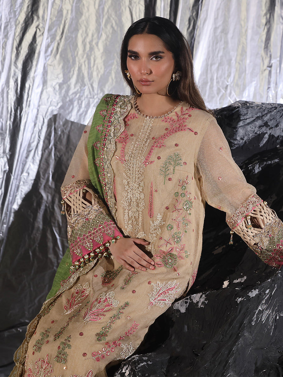 Karandi Net Dyed Embroidered Front With Dori And Zari, Sequins (0.64 Apx)